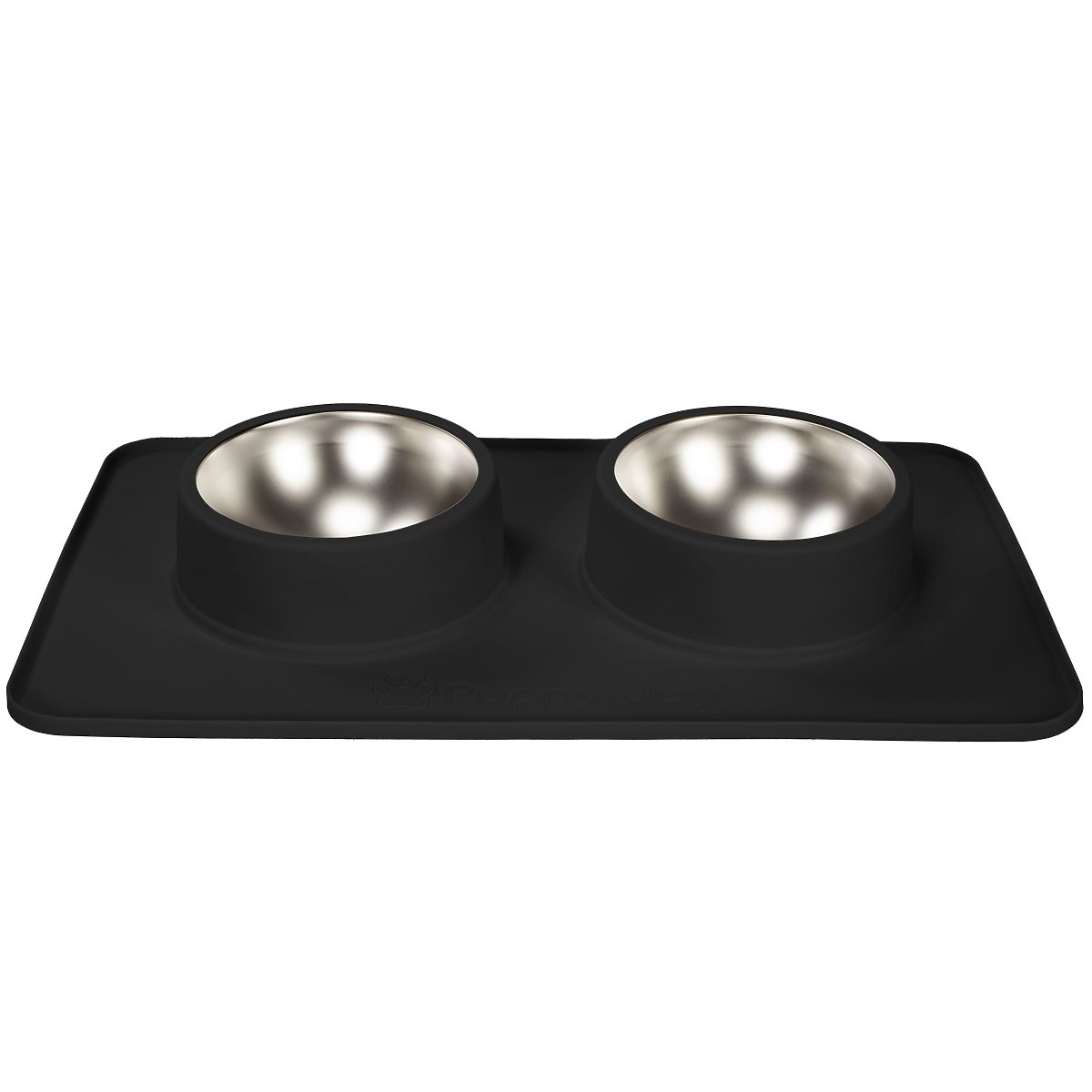 Metallschalen für Hund oder Katze mit rutschfester Unterlage Schwarz PJ-086
