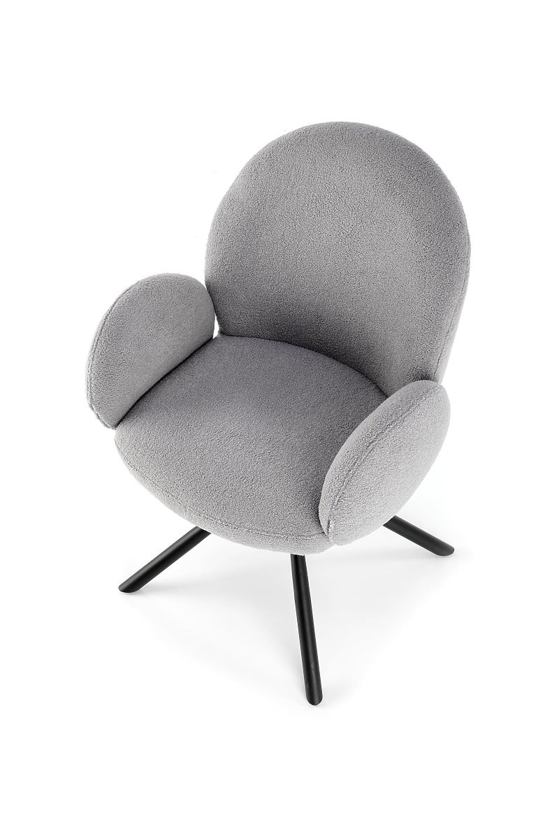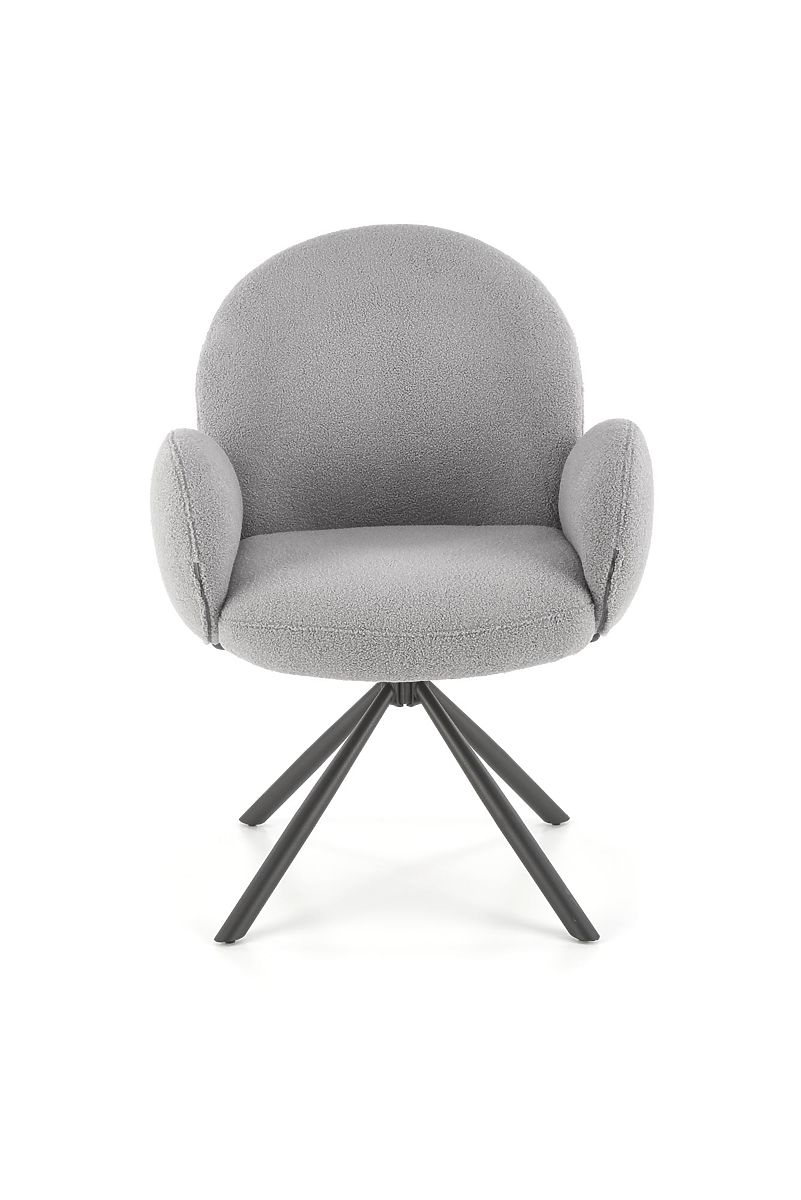 Drehbarer Stuhl aus grauem Bouclé-Stoff. .. mehr