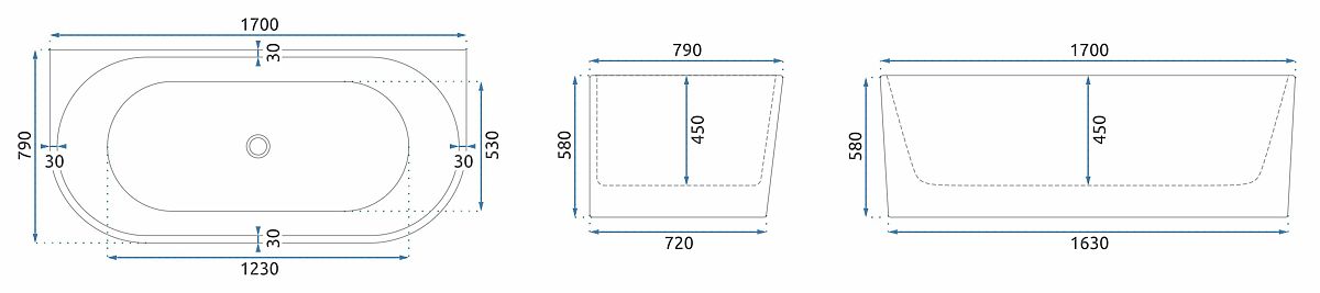 Acryl-Wandbadewanne VENETA 170 cm