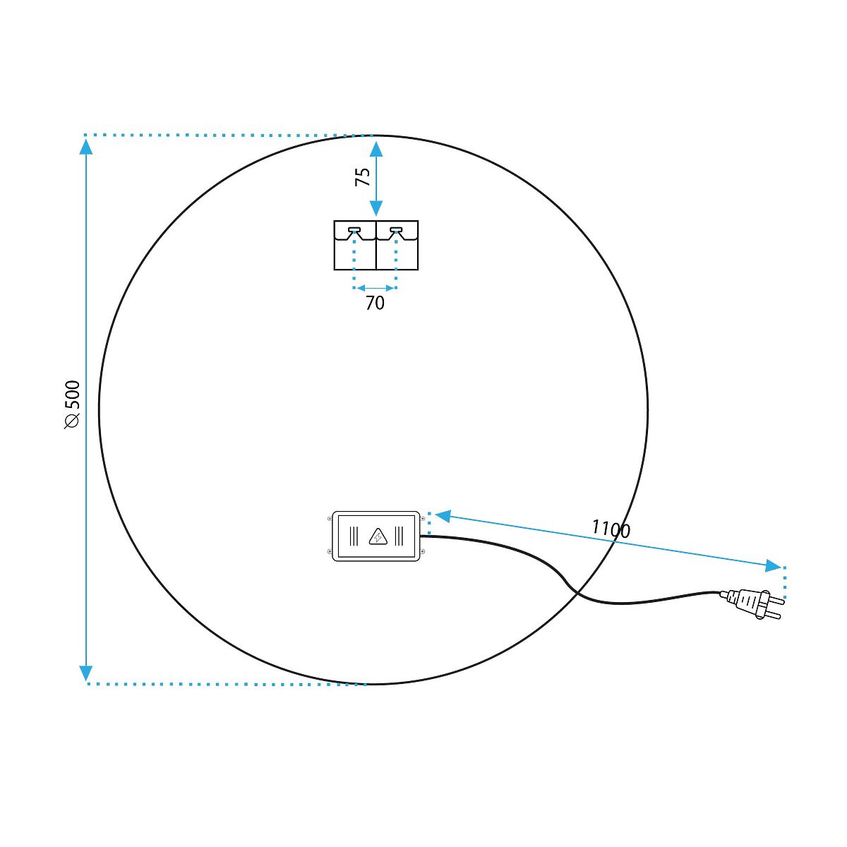 Der runde Spiegel mit LED-Hintergrundbeleuchtung ist die ideale Wahl für diejenigen, die Komfort und modernes Design schätzen. Der Spiegel besteht aus hochwertigsten Materialien, sieht großartig aus und ist sehr langlebig. Er bietet drei per Touch wechselbare LED-Lichtfarben – warm, neutral und kalt – sowie eine Heizfunktion, die das Beschlagen der Oberfläche verhindert. Der Touch-Schalter, der sich auf der Spiegeloberfläche befindet, leuchtet bei Aktivierung der Funktion blau. Weißes Stromkabel mit einer Länge von 110 cm. Spiegelstärke: 4 mm