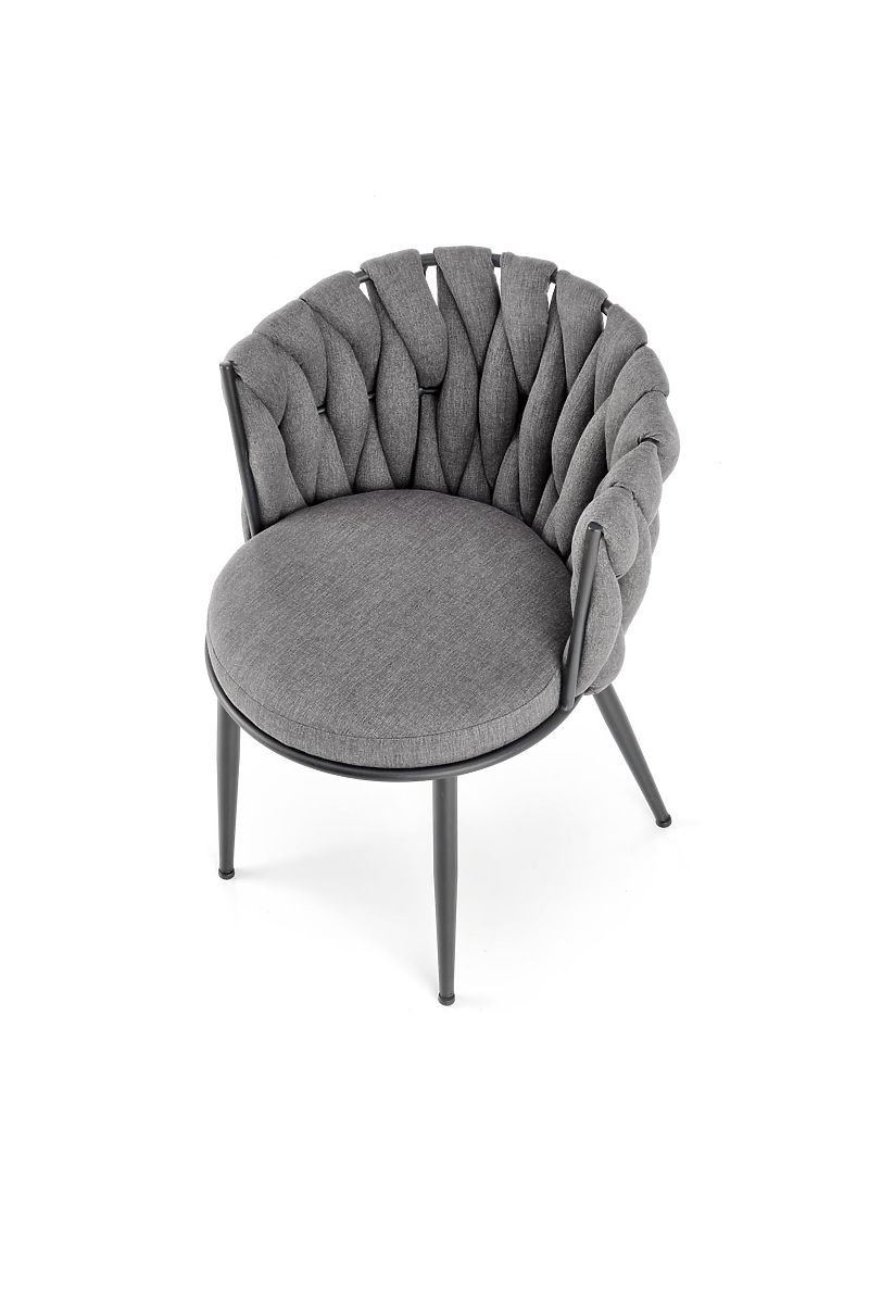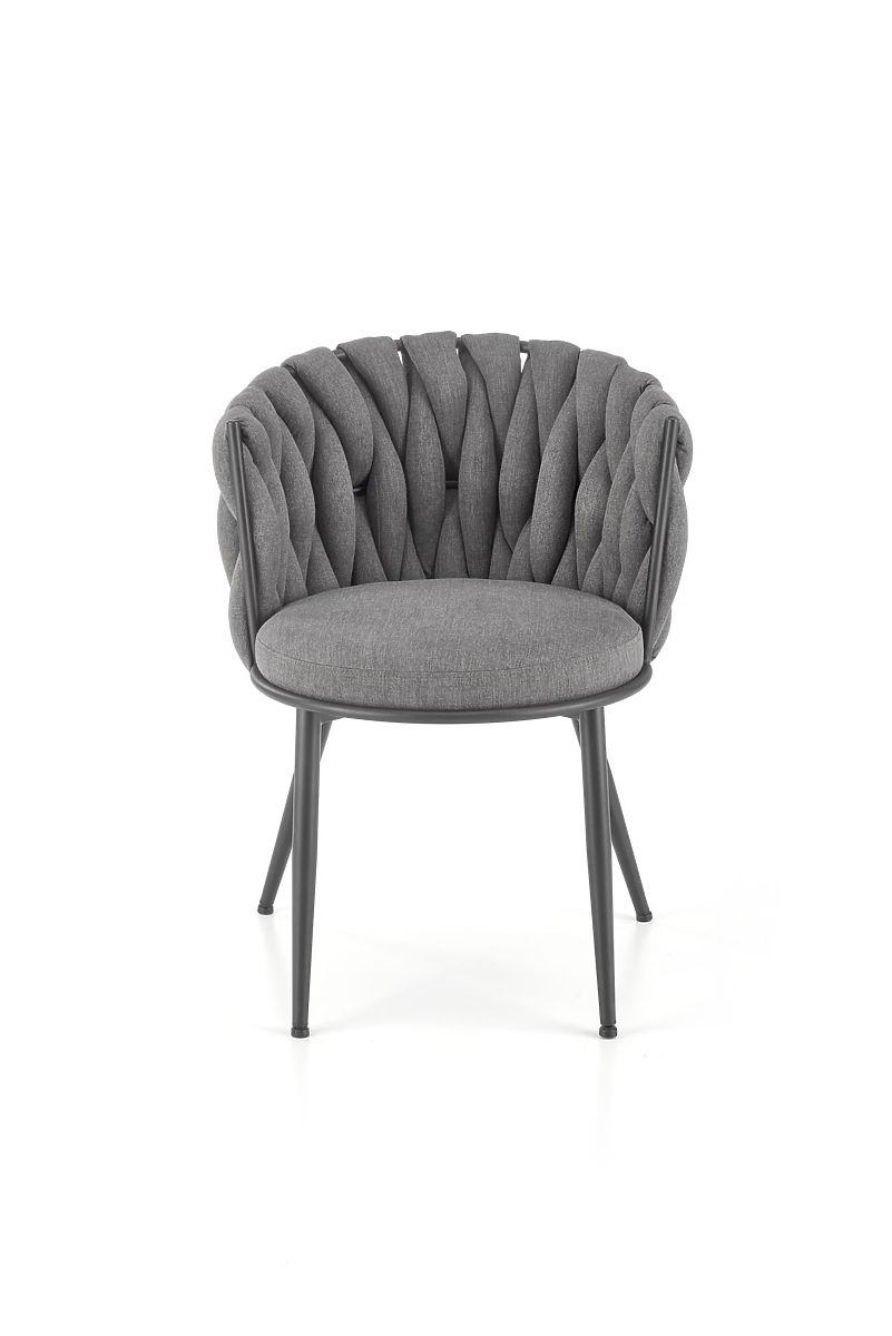 Stuhl aus Stoff und pulverbeschichtetem Stahl in Grau. .. mehr