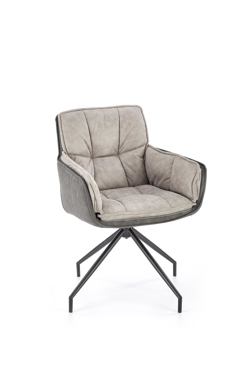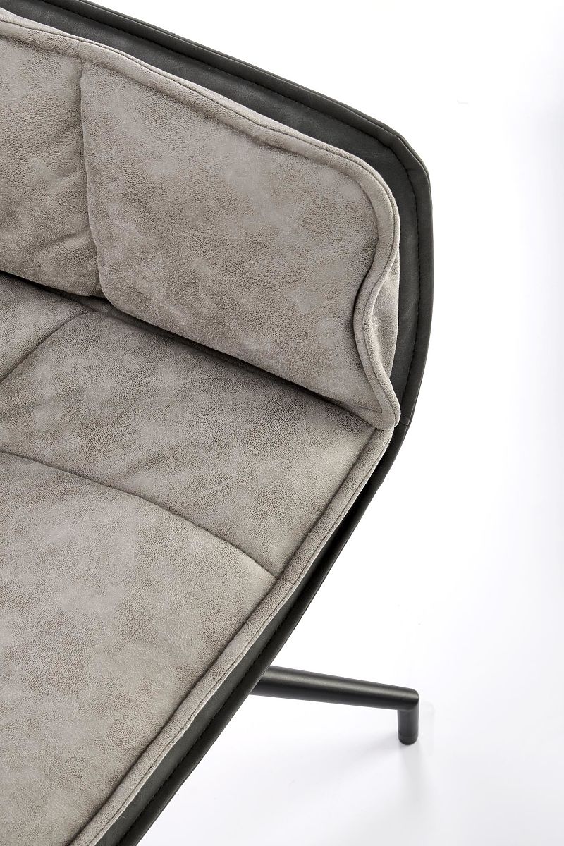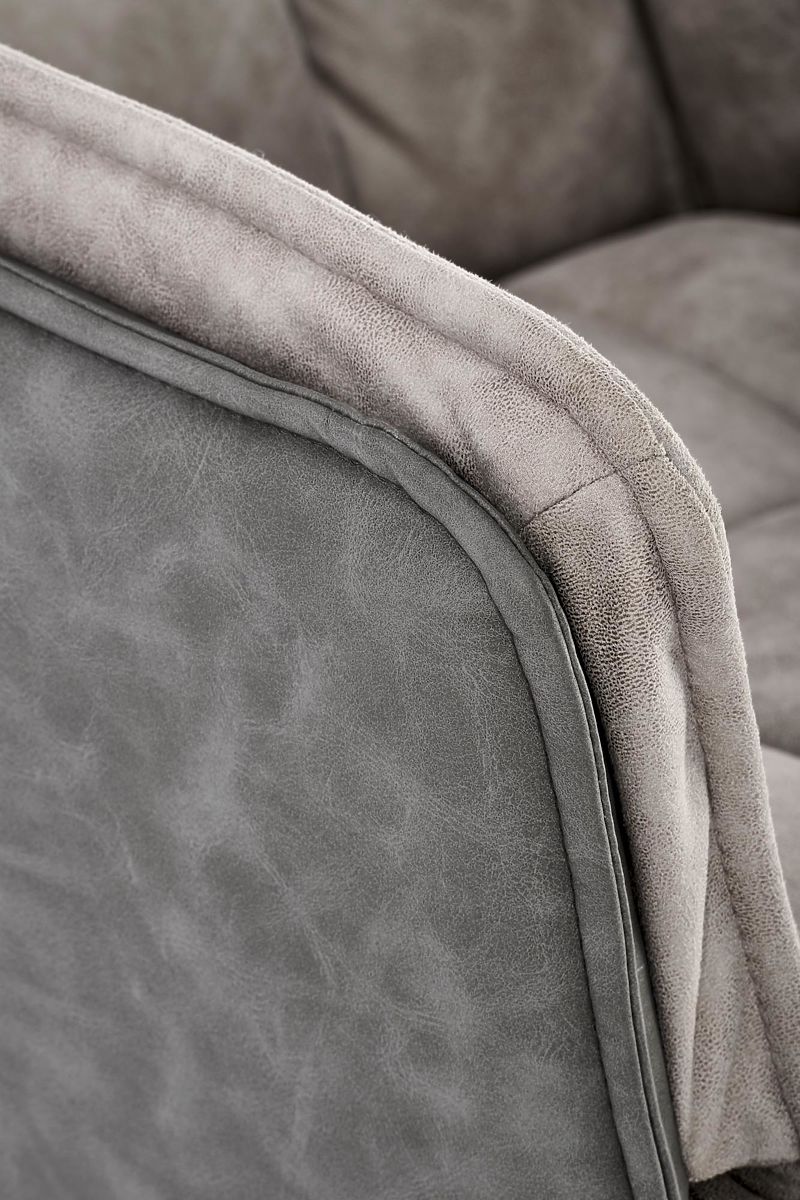 Stuhl aus Stoff und Kunstleder in grau und dunkelgrau. .. mehr
