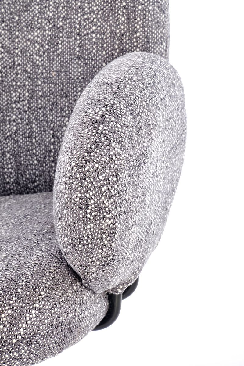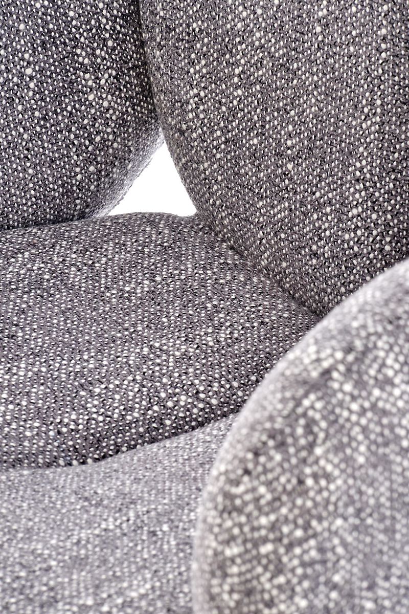 Drehbarer Stuhl aus grauem Stoff und Stahl. .. mehr