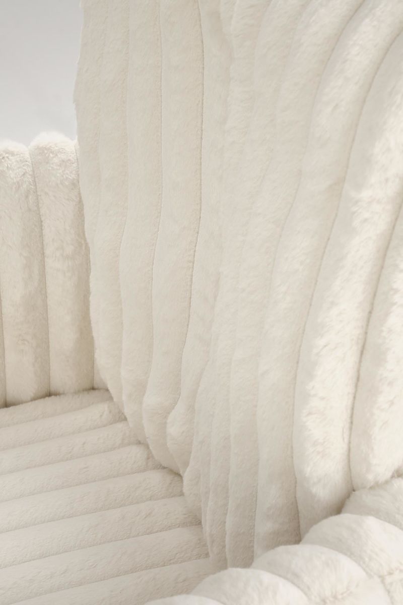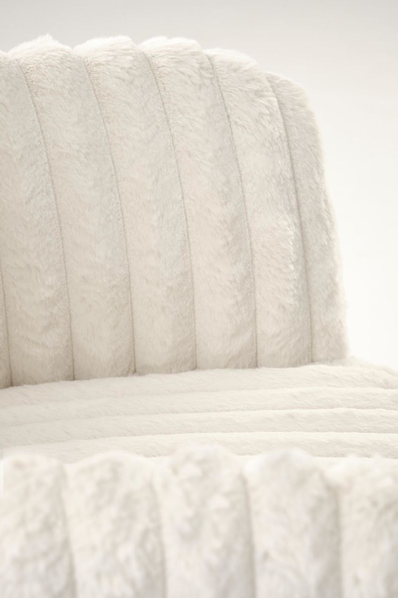 Drehbarer cremefarbener Stuhl aus Stoff und Stahl. .. mehr