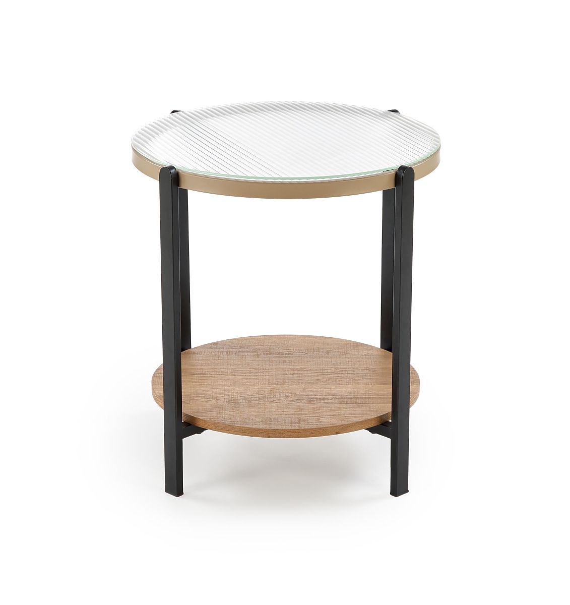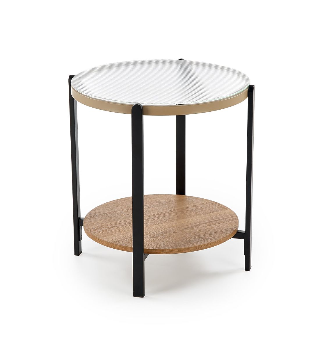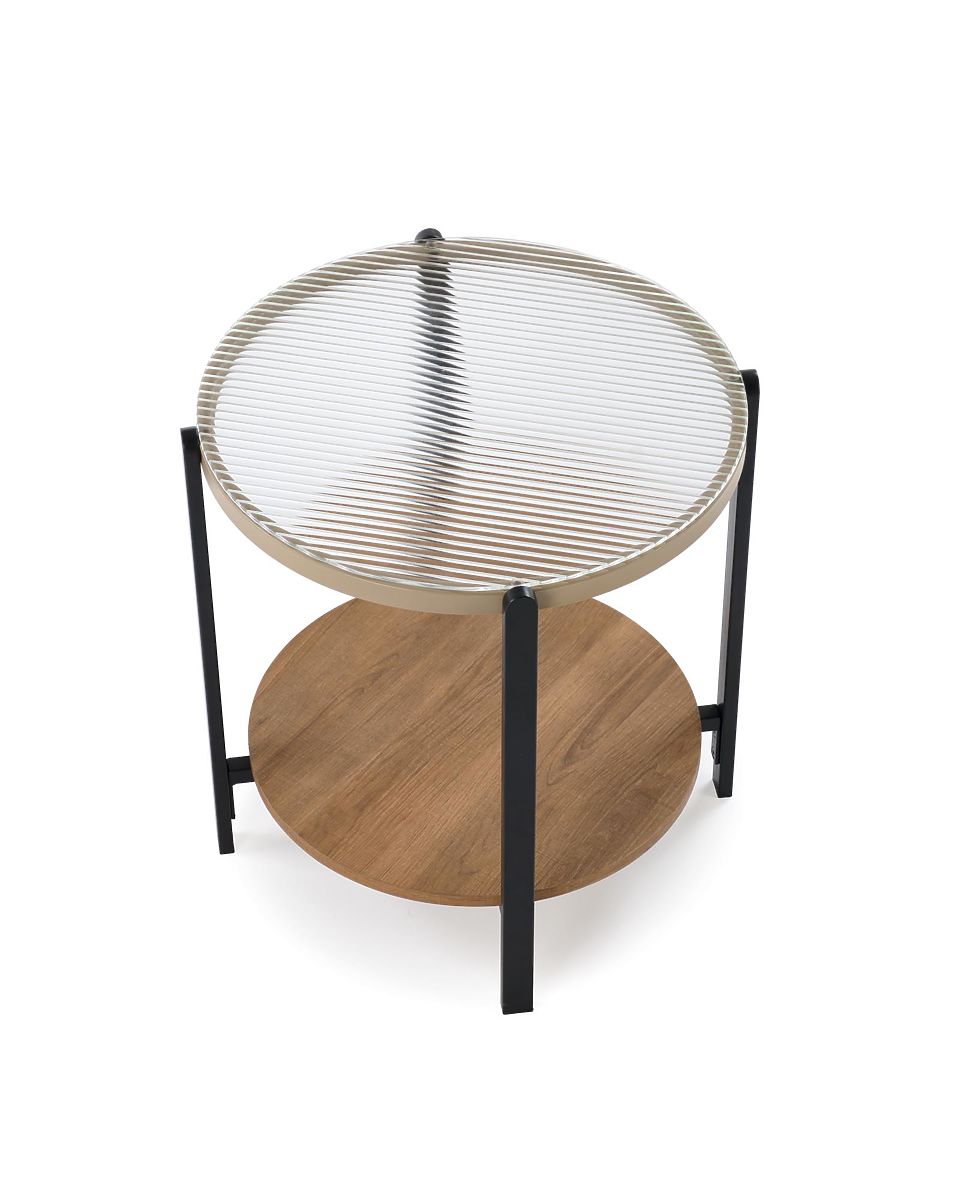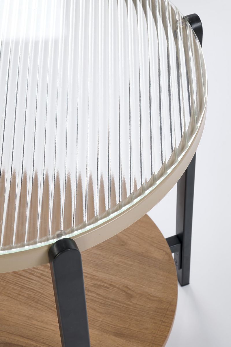 Tisch aus Glas, furniertem MDF und pulverbeschichtetem Stahl. .. mehr