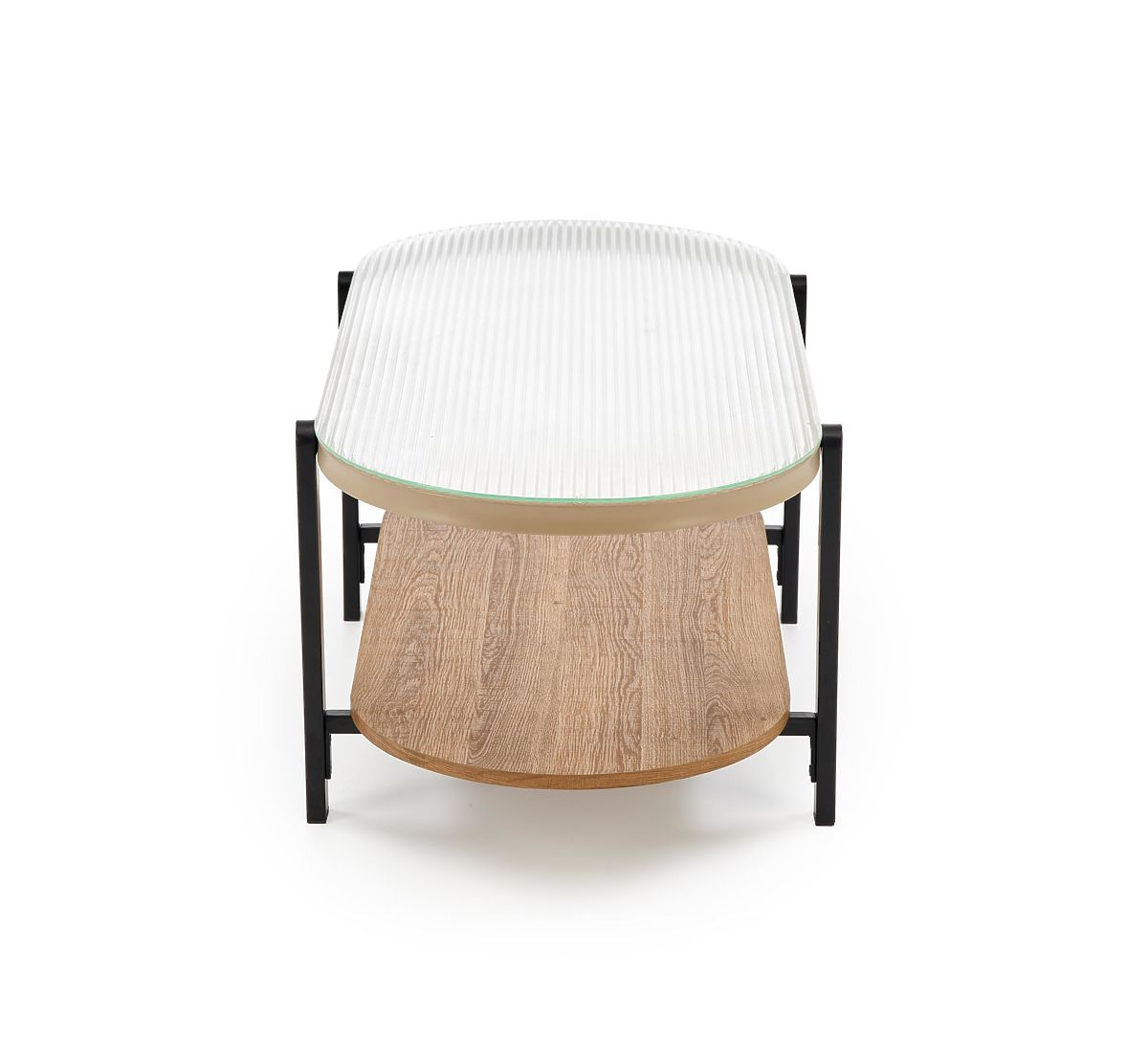 Couchtisch aus Glas und furniertem MDF in natur-schwarz. .. mehr
