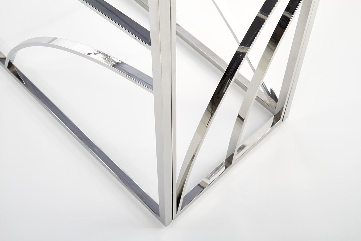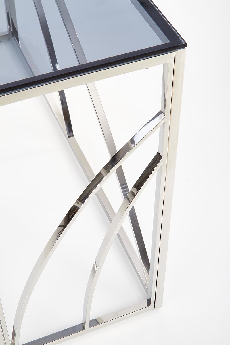 Rauchfarbene Glas-Konsole mit silbernem Rahmen. .. mehr