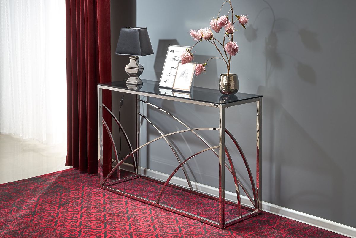 Lukahome.at » Tische und Couchtische / Konsolentische / KN5 Konsole, Rahmen - silber, Glas - rauchfarben (1p=1 Stk.)