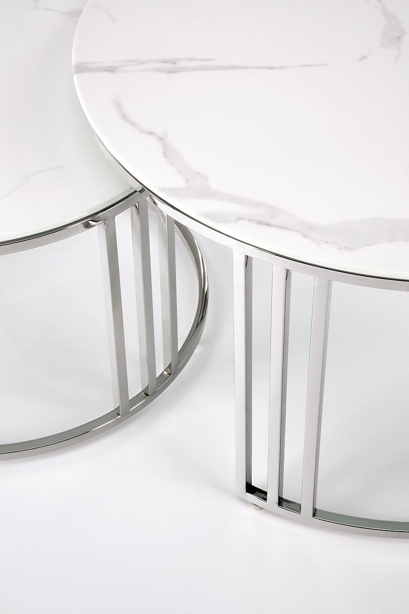 Lukahome.at » Stoly a stolky / Konferenční stolky / MERCURY 2 Set aus 2 Bänken, Rahmen - Silber, Glas - Weißer Marmor (1p=1Stk)