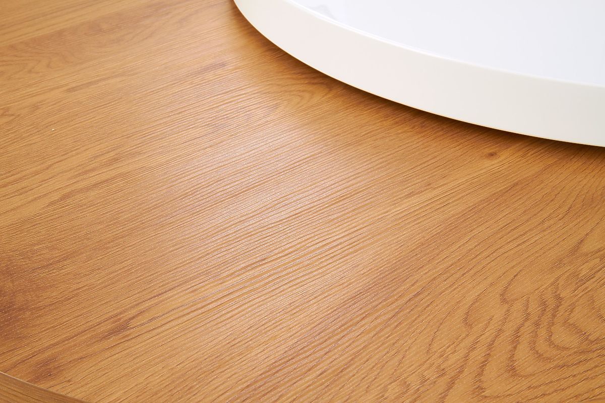 Couchtisch aus lackiertem und laminiertem MDF in weiß und goldener Eiche. .. mehr
