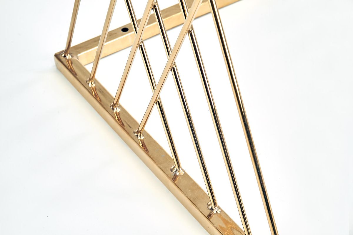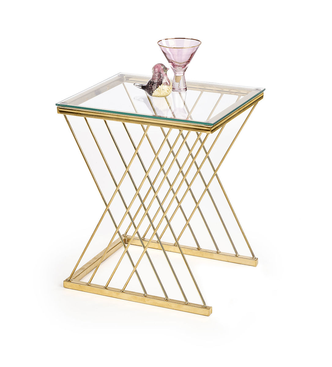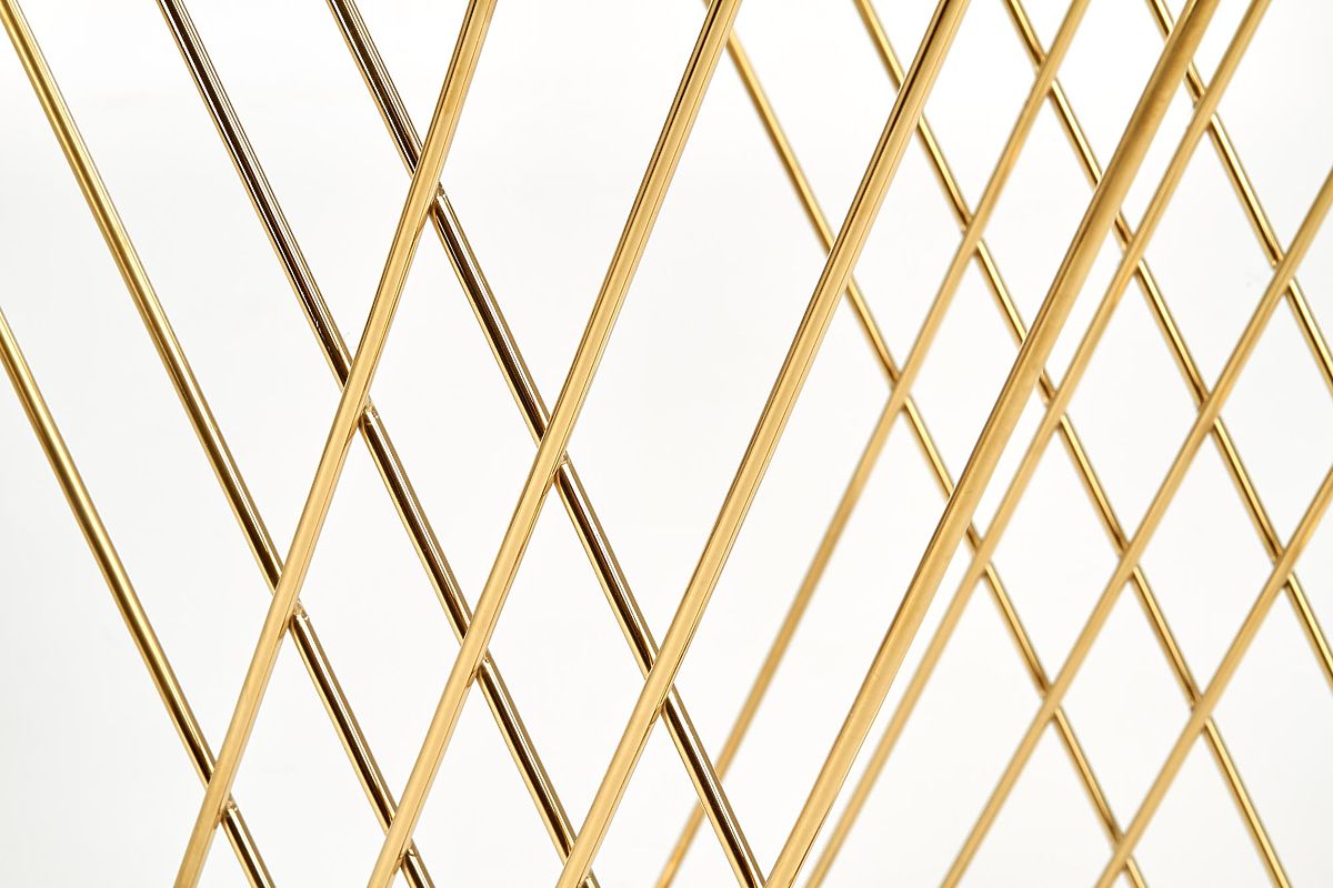 Der originell geformte Sockel in Kombination mit der transparenten Glasplatte verleiht dem Tisch ein leichtes und elegantes Aussehen, das auf den ersten Blick beeindruckt. Die Verbindung von verchromtem Stahl in Goldoptik und Glas schafft einen luxuriösen Eindruck und ergänzt sowohl moderne als auch glamouröse Interieurs perfekt.