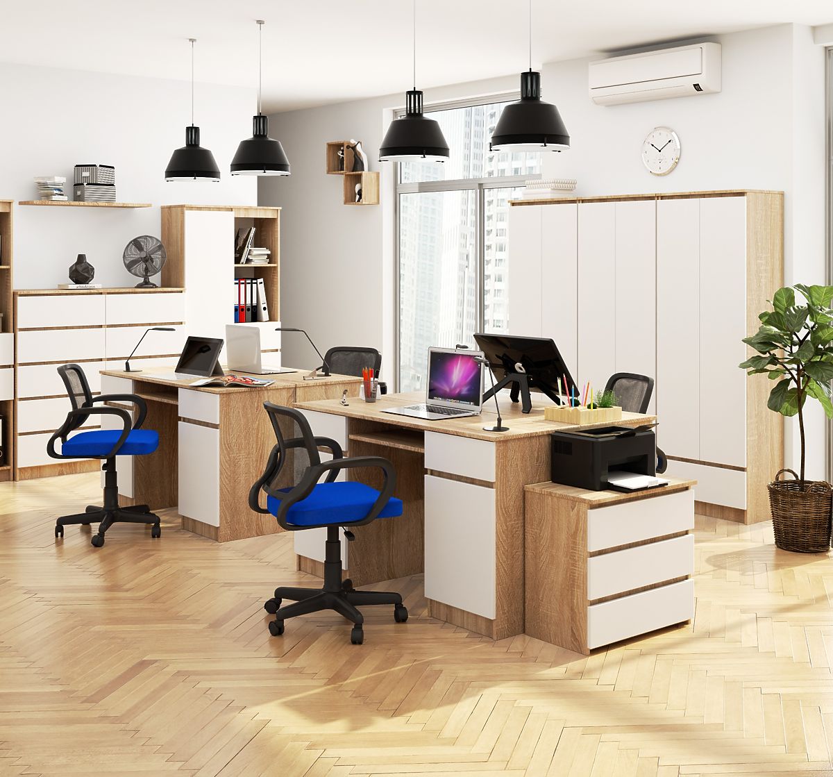 Der Computertisch A5 mit einer Länge von 135 Zentimetern, der zwei modische Farben (Sonoma Eiche und Weiß) kombiniert, ist sowohl für die Einrichtung eines Büros als auch für das Homeoffice, Kinder- oder Studentenzimmer geeignet.