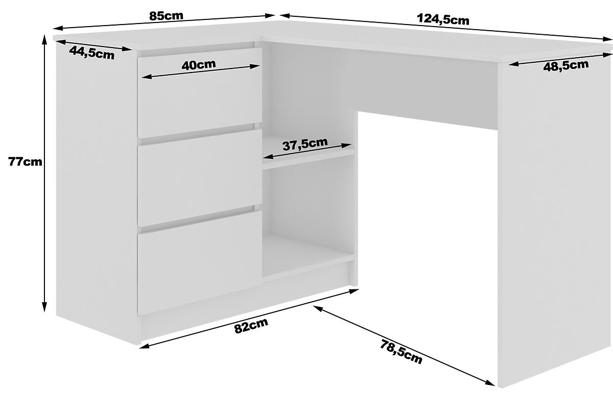 Lukahome.at » Stoly a stolky / Psací stoly / ECKSCHREIBTISCH B16 124 cm LINKS 3 SCHUBLADEN PK WEIß / SONOMA