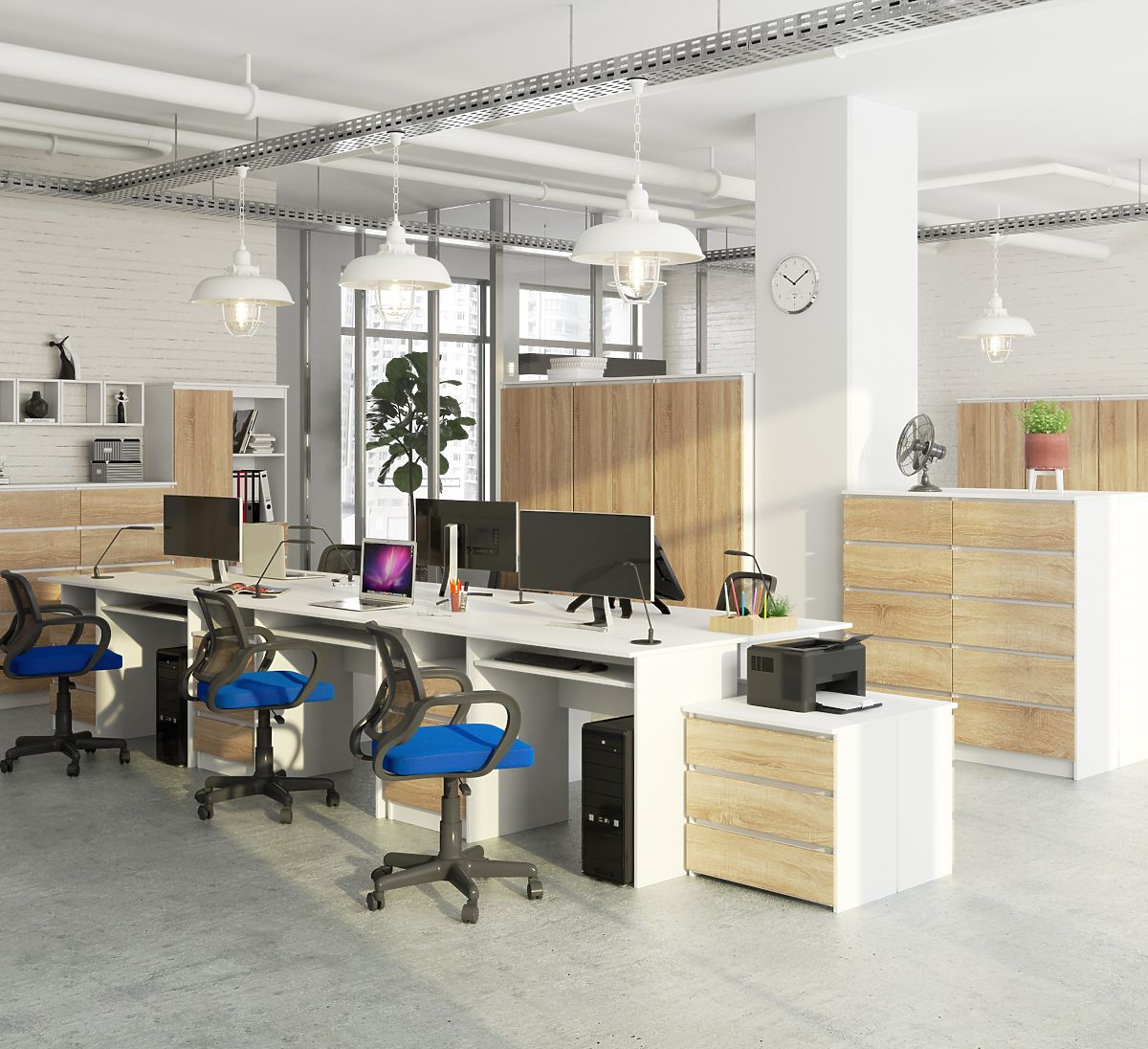 Schreibtisch aus 16mm abriebfestem laminiertem Plattenmaterial.
