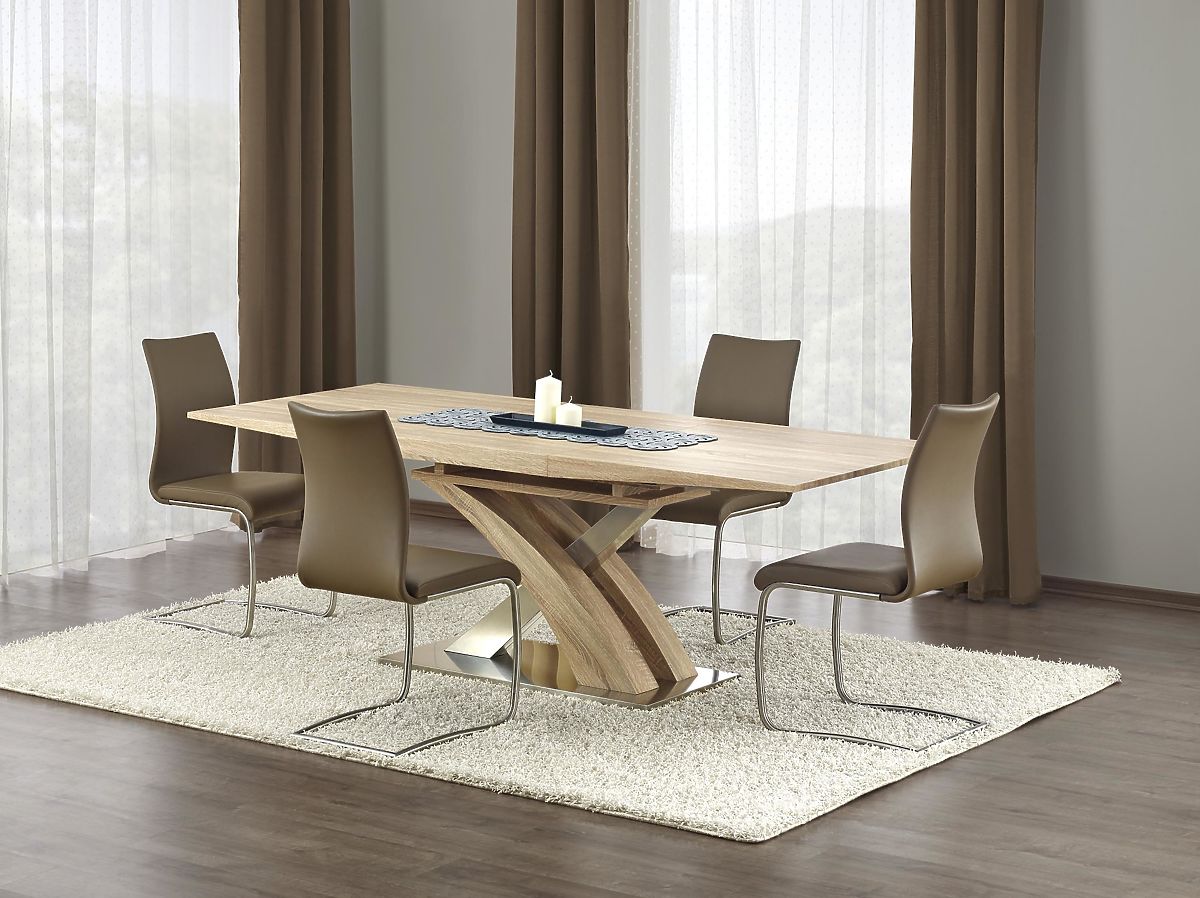 Ausziehbarer Tisch aus Eiche Sonoma mit Edelstahl. .. mehr