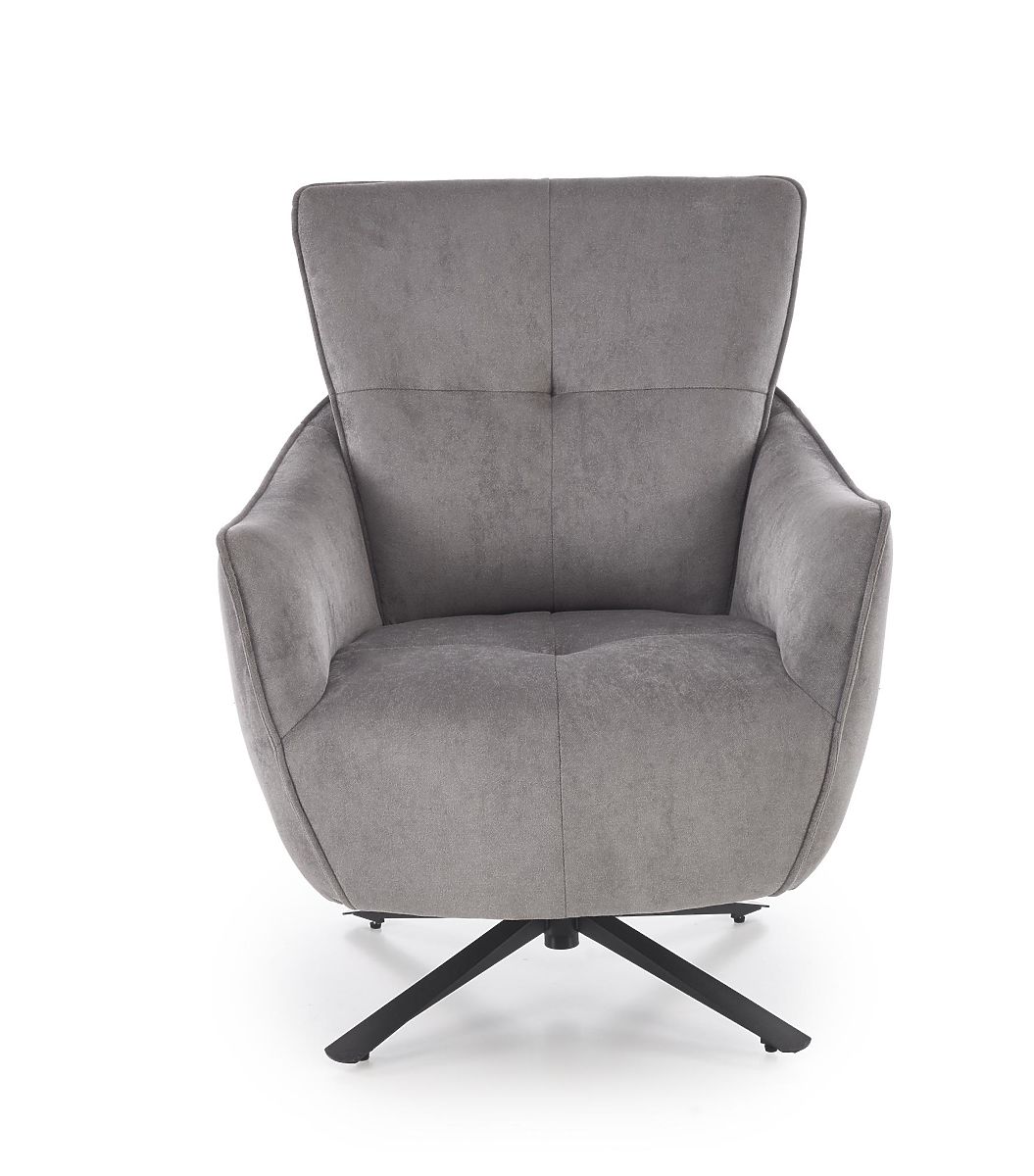 Drehbarer Relaxsessel aus grauem Stoff. .. mehr