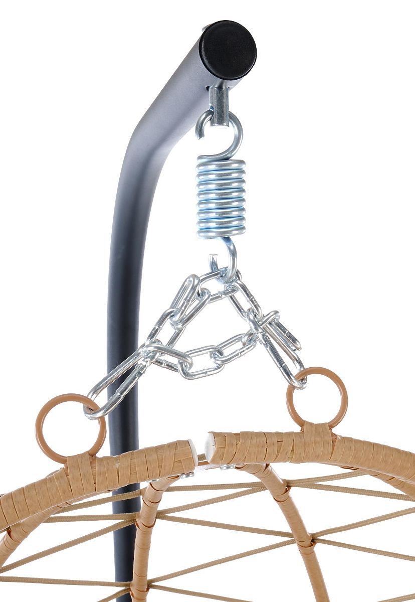 Der Hängesessel Snake ist ein stilvoller Relaxsessel für eine Person, der einen idealen Ort zur Entspannung im Garten, auf der Terrasse oder dem Balkon bietet. Seine umarmende Korbform vermittelt ein Gefühl von Privatsphäre und Sicherheit, während sanftes Schaukeln zur allgemeinen Entspannung und Erholung beiträgt. Der ergonomisch geformte Korb mit hoher Rückenlehne sorgt für bequemes Sitzen beim Lesen, Unterhalten oder kurzen Ausruhen. Zum Sessel gehören weiche Kissen, die Sitzfläche und Rücken stützen und den Komfort beim Gebrauch erheblich erhöhen. Die Stabilität wird durch eine freistehende Stahlkonstruktion mit Pulverbeschichtung gewährleistet, sodass der Sessel nicht an der Decke aufgehängt werden muss. Dies ermöglicht ein einfaches Umstellen je nach aktuellem Bedarf der Ruhezone. Das Gewicht der Konstruktion trägt zu einer sicheren und stabilen Nutzung bei. Der Korb des Sessels besteht aus wetterbeständigem Eco-Rattan, das luftig, robust und für den Außeneinsatz geeignet ist. Metallelemente sorgen für Langlebigkeit und Stabilität der gesamten Konstruktion, während die Textilkissen dem Sessel einen gemütlichen Charakter verleihen.