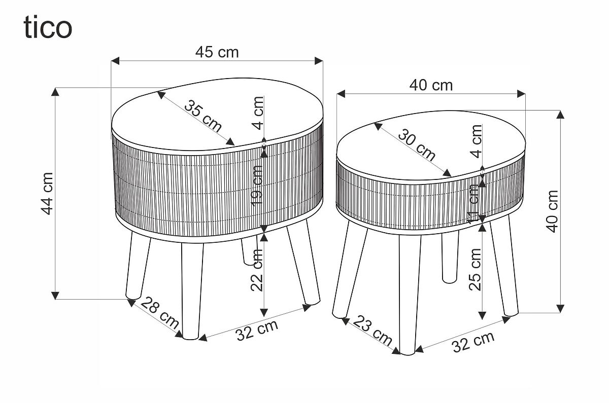 Das Set aus zwei Hockern TICO bietet eine elegante und praktische Lösung für moderne und gemütlich gestaltete Innenräume. Dank seiner sanften ovalen Form, dem natürlichen Holz und der beigen Polsterung wirkt es harmonisch und zeitlos und wird so leicht zu einem stilvollen Accessoire im Wohnzimmer, Schlafzimmer oder Flur. Die Hocker sind mit einem angenehmen Stoff in einem Beigeton bezogen, der dem Raum Wärme und Weichheit verleiht. Die stabile Konstruktion aus massivem Kautschukholz in natürlicher Ausführung sorgt für Festigkeit und Langlebigkeit. Jeder Hocker ist zudem mit einem praktischen Stauraum ausgestattet, ideal zum Verstauen von Decken, Kissen, Kleinigkeiten oder Wohnaccessoires. Dank der unterschiedlichen Abmessungen können die Hocker einzeln verwendet oder je nach aktuellem Bedarf praktisch kombiniert werden. Sie dienen hervorragend als zusätzliche Sitzgelegenheit, Fußstütze oder dekoratives Element im Innenraum. Sie werden zerlegt geliefert, um eine einfache Handhabung zu gewährleisten.