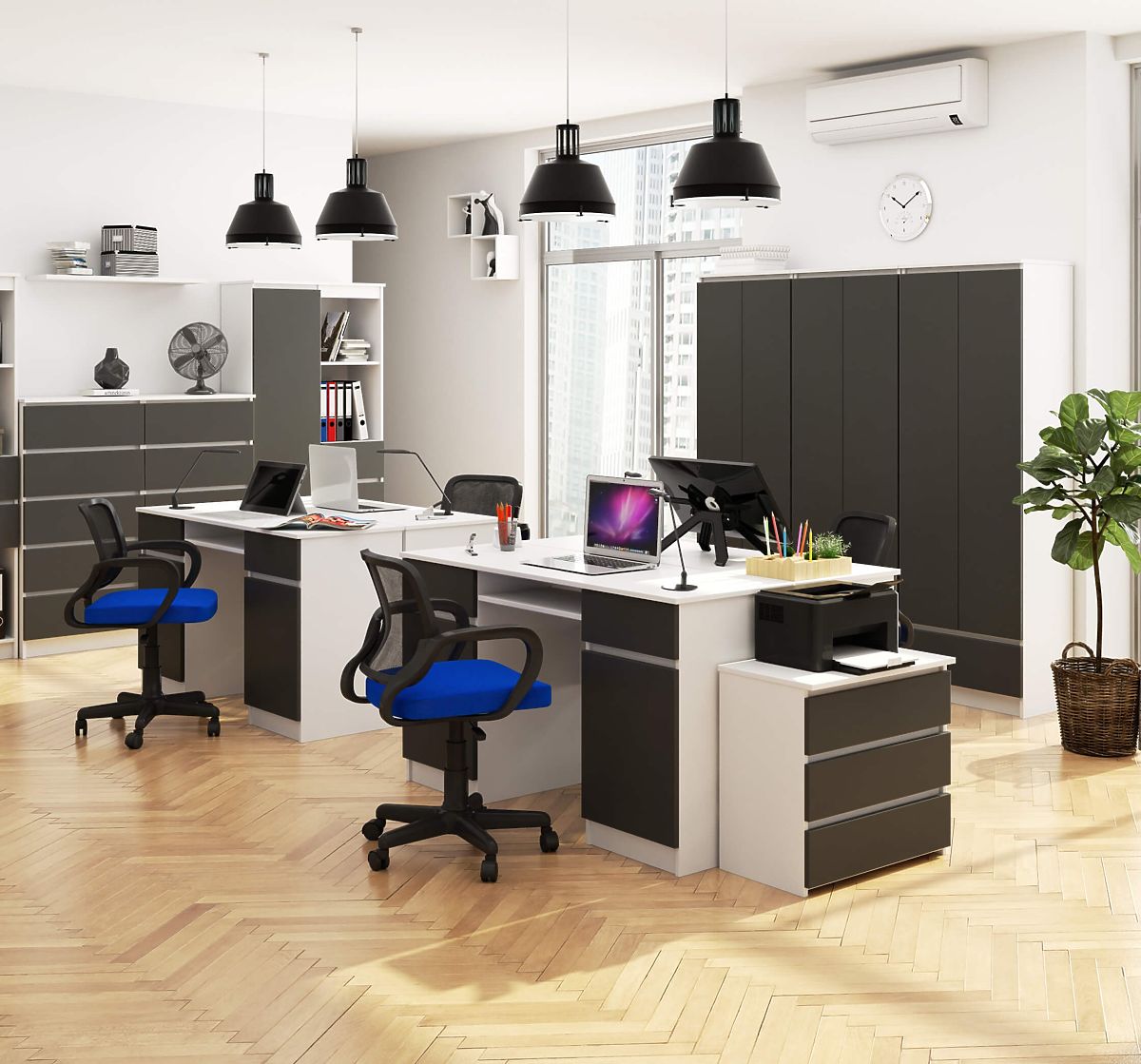 Schreibtisch aus 16 mm abriebfestem laminiertem Plattenmaterial.