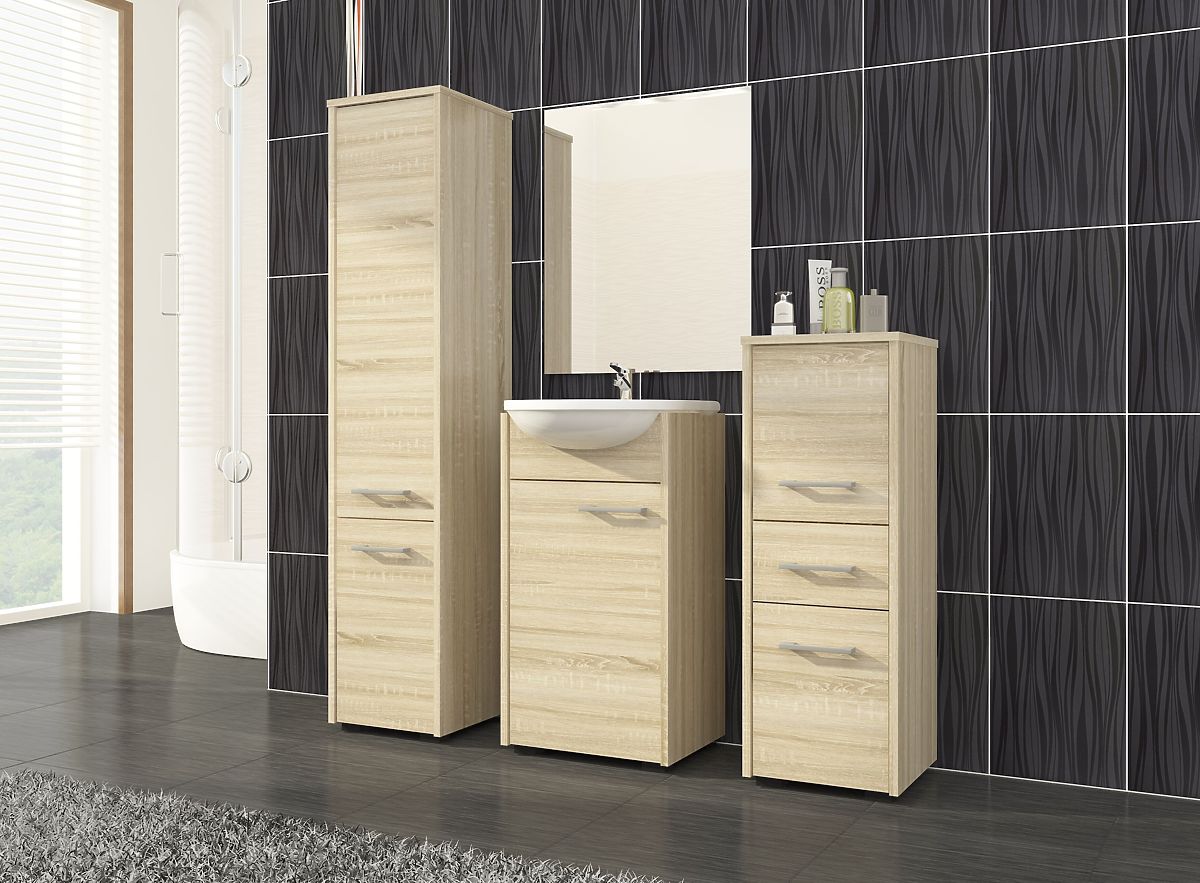 Lukahome.at » Bathroom & Toilet / Koupelnové skříňky / HOHER BADEZIMMERSCHRANK FIN 2 TÜREN EICHE SONOMA