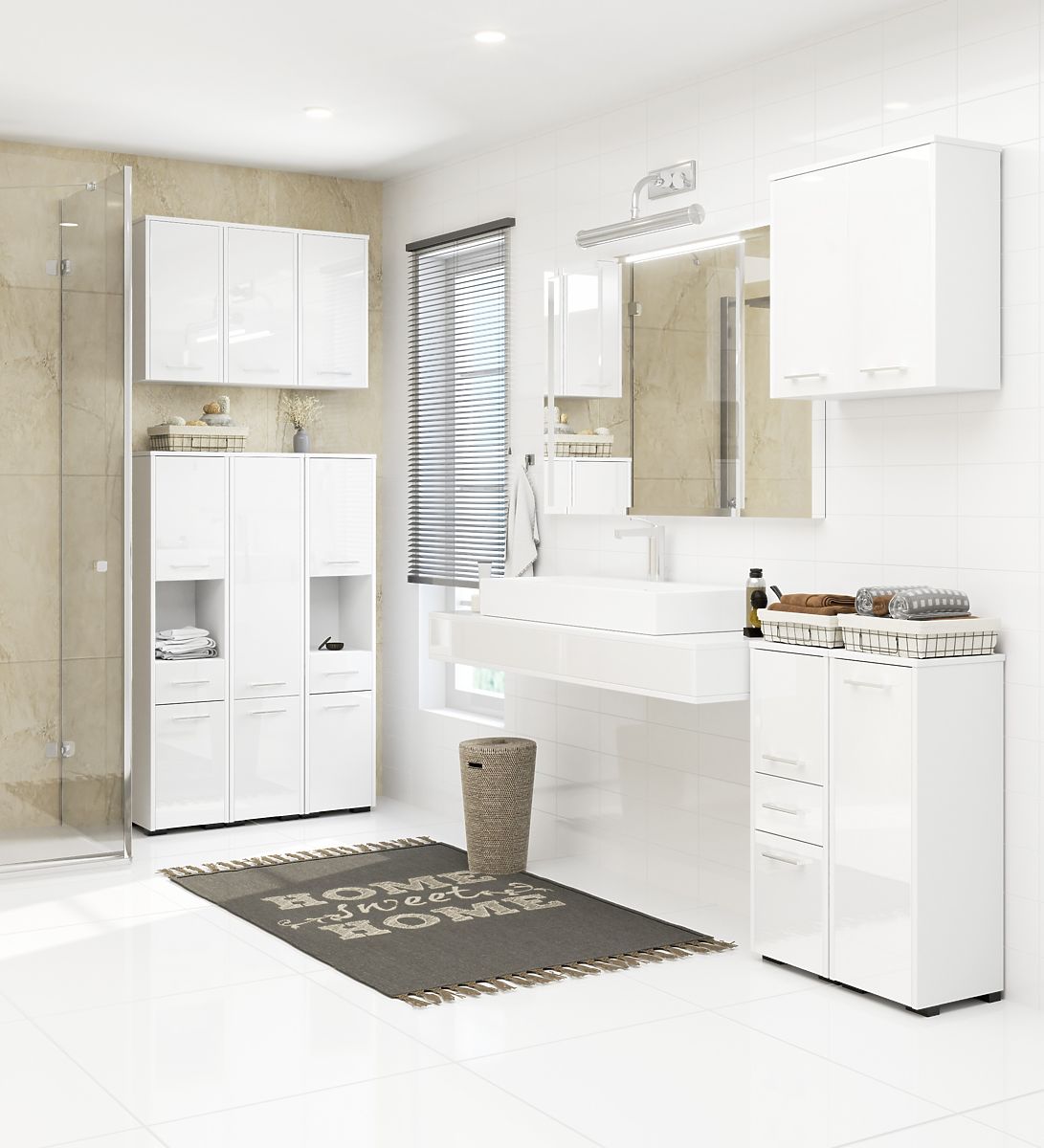 Lukahome.at » Bathroom & Toilet / Koupelnové skříňky / BADEZIMMERSCHRANK FIN ÜBER DER WASCHMASCHINE WEISS GLANZ