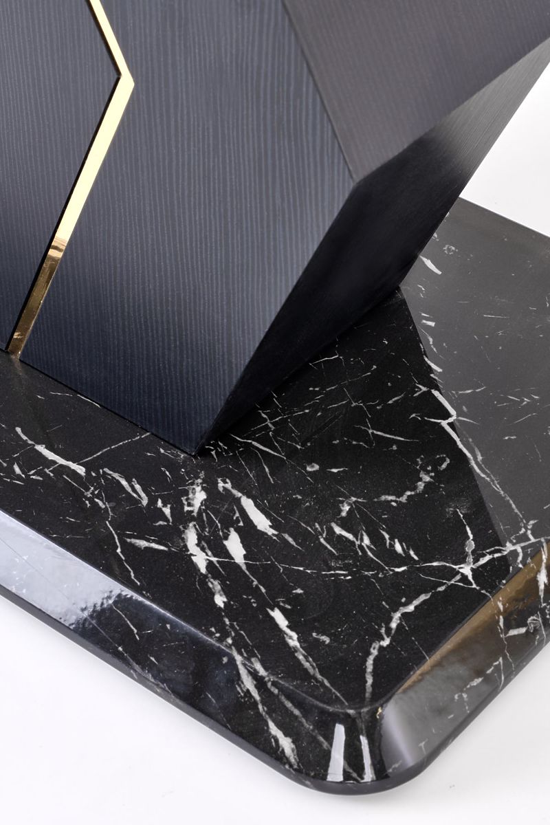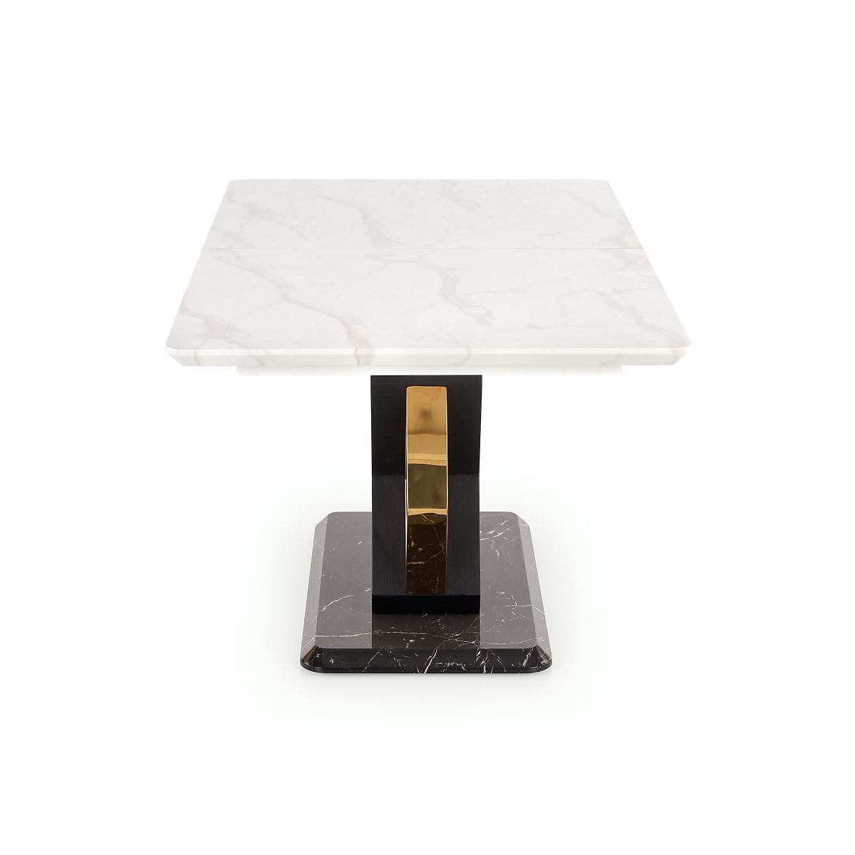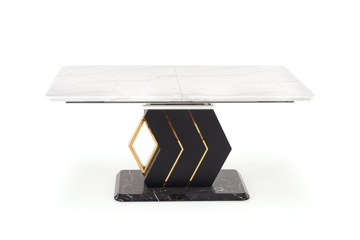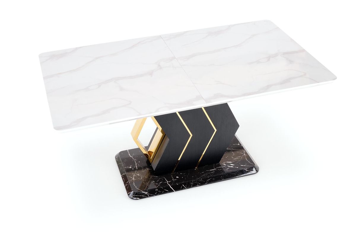 Lukahome.at » Esszimmer und Küche / Esstische / VINCENZO ausziehbarer Tisch Platte: weißer Marmor, Bein schwarz/gold (3p=1Stk)
