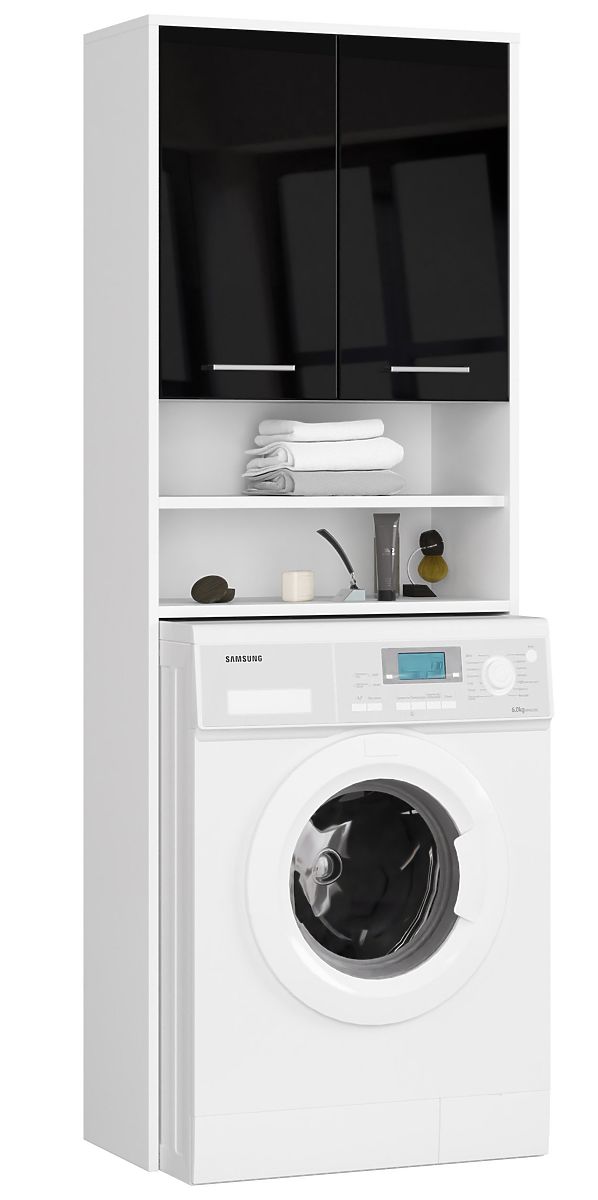 Lukahome.at » Bathroom & Toilet / Koupelnové skříňky / BADEZIMMERREGAL FIN ÜBER DER WASCHMASCHINE WEISS / SCHWARZ GLANZ
