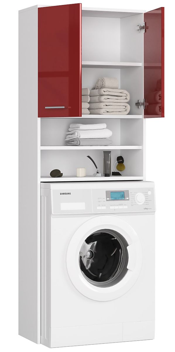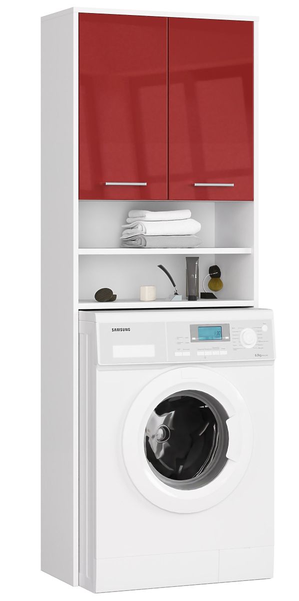 Lukahome.at » Bathroom & Toilet / Koupelnové skříňky / BADEZIMMERREGAL FIN ÜBER DER WASCHMASCHINE WEISS / ROTER GLANZ