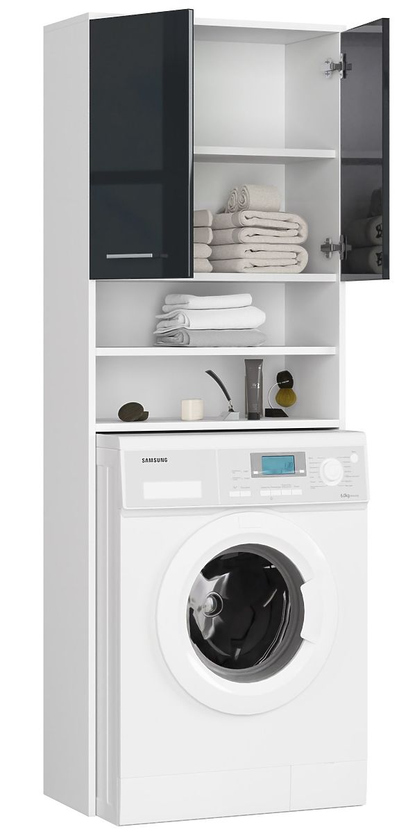 Lukahome.at » Bathroom & Toilet / Koupelnové skříňky / BADEZIMMERREGAL FIN ÜBER DER WASCHMASCHINE WEISS / GRAPHIT GLANZ