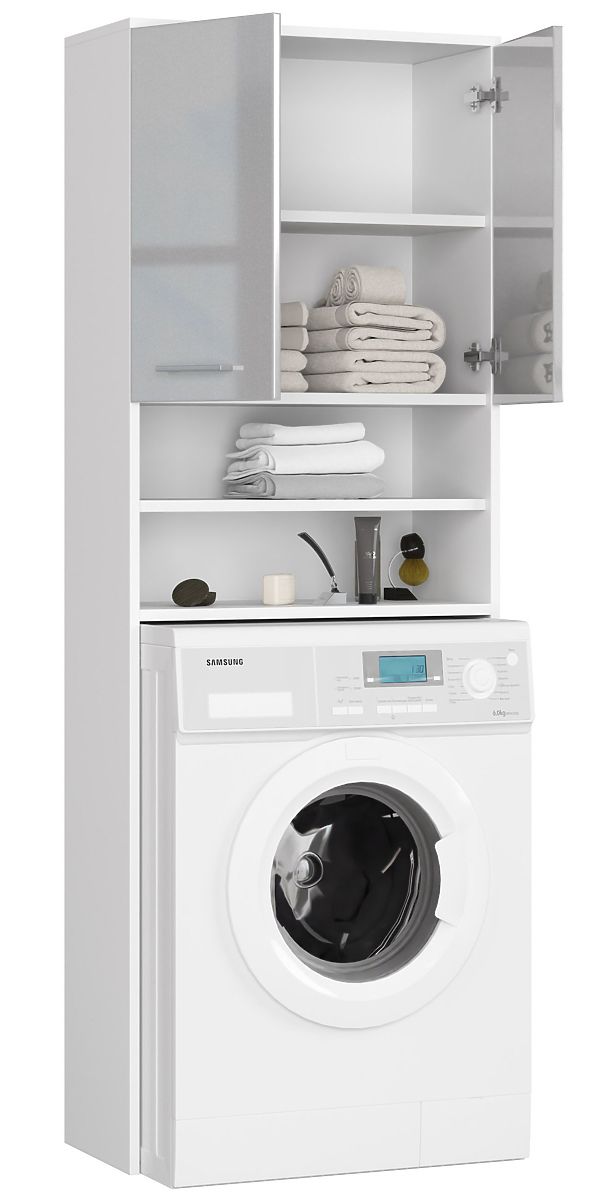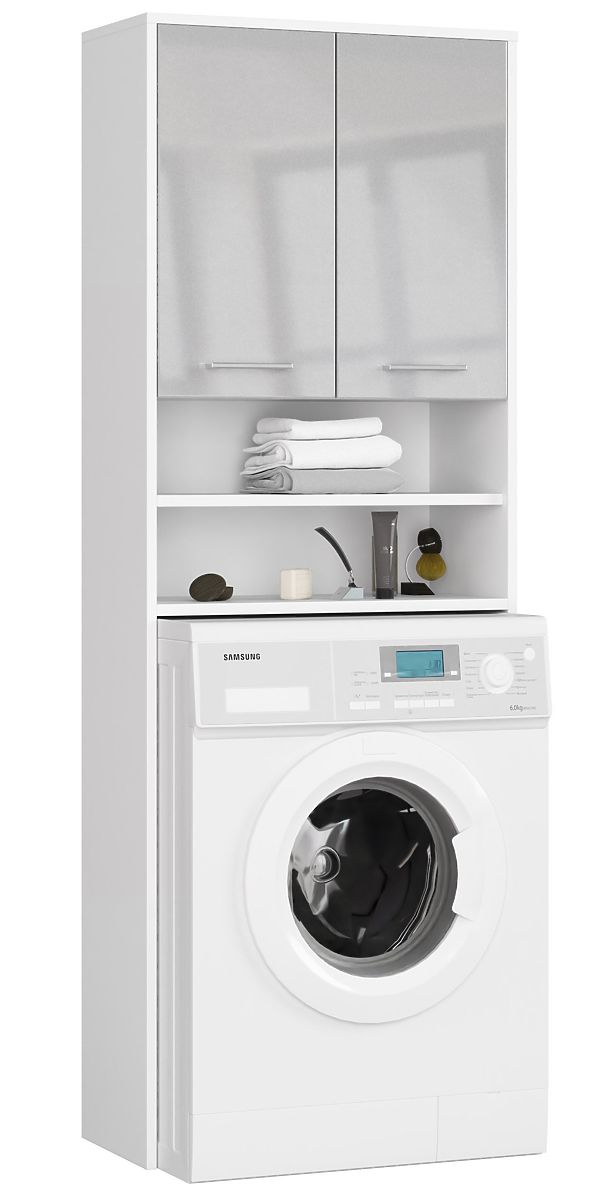 Lukahome.at » Badezimmer und Toilette / Badezimmerschränke / BADEZIMMERREGAL FIN ÜBER DER WASCHMASCHINE WEISS / METALLISCHER GLANZ