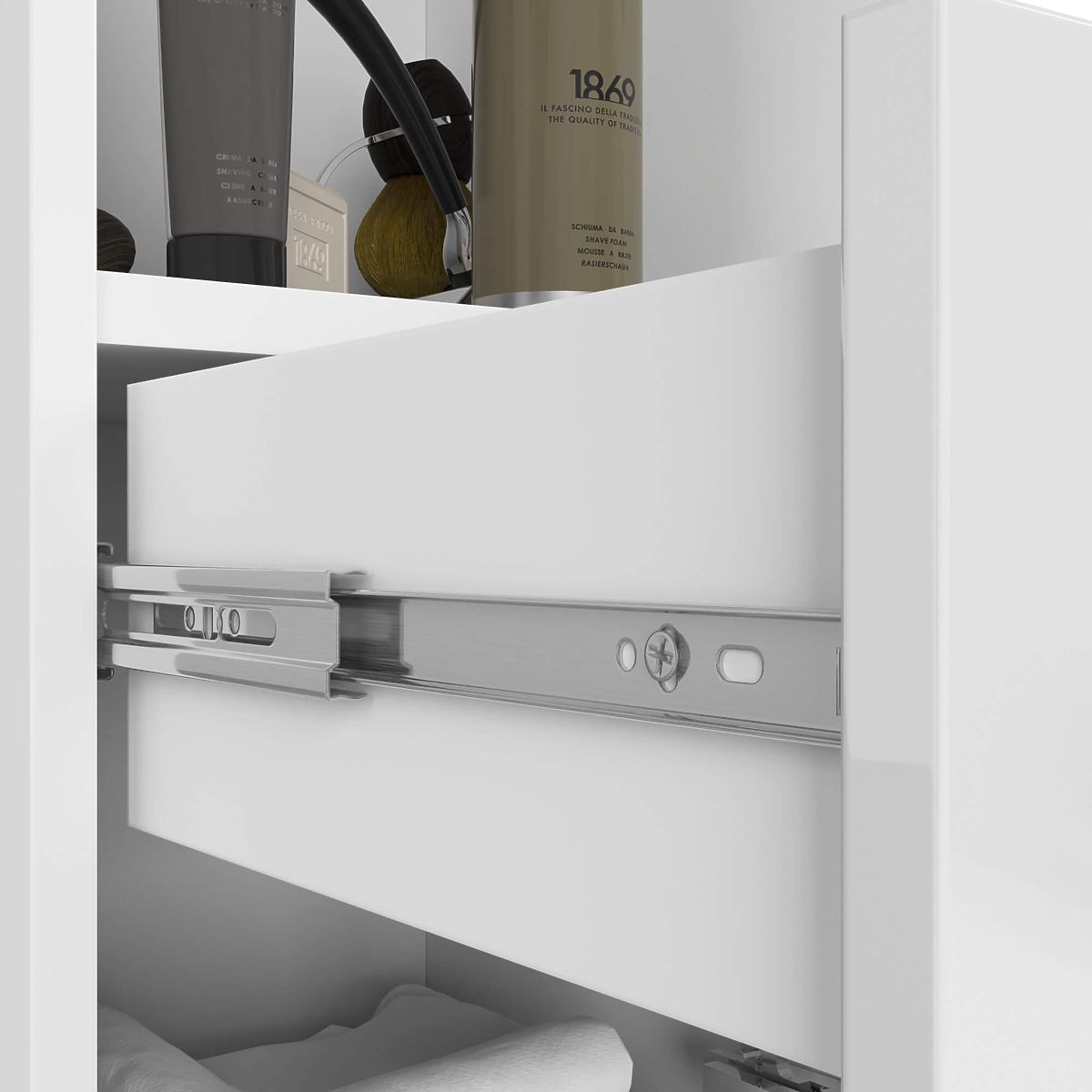 Funktionaler Badezimmerschrank in Weiß Hochglanz mit viel Stauraum. .. mehr