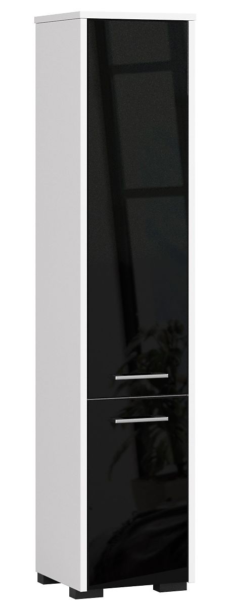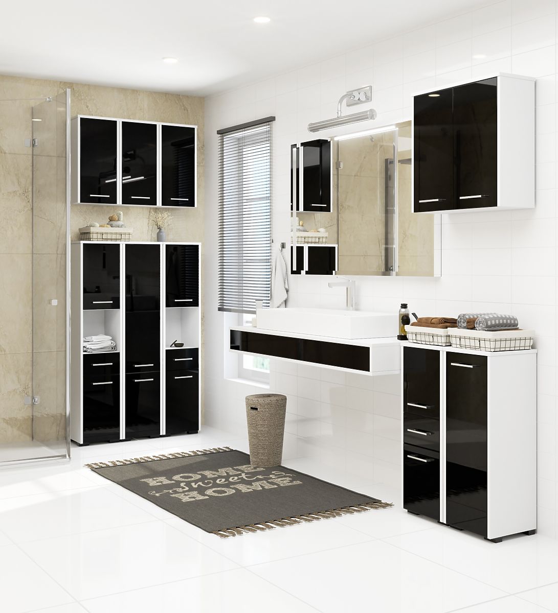 BADEZIMMERSCHRANK FIN 2 TÜREN WEISS / SCHWARZ GLANZ Hergestellt aus 16mm abriebfestem laminiertem Holz.