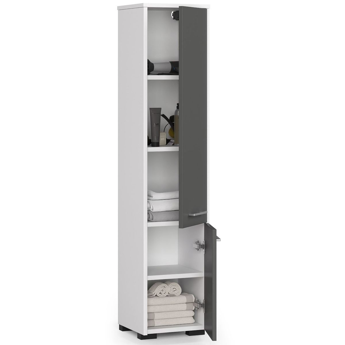 Lukahome.at » Bathroom & Toilet / Koupelnové skříňky / BADEZIMMERREGAL FIN SÄULE 30 2D 140cm WEISS / GRAU