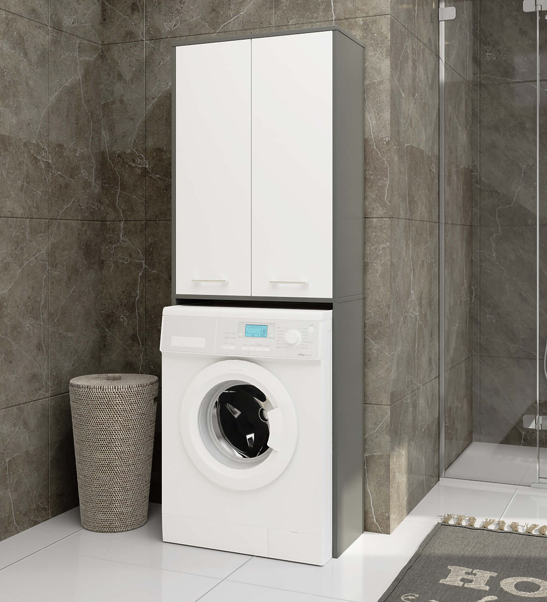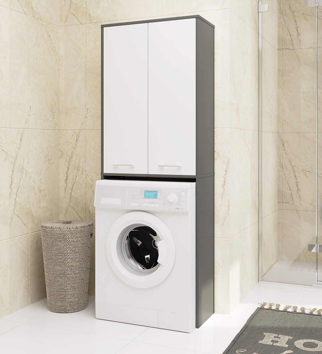 Lukahome.at » Bathroom & Toilet / Koupelnové skříňky / BADEZIMMERSÄULE FIN 180 WASCHMASCHINENOBERSCHRANK VOLLE 2D - GRAU / WEISS
