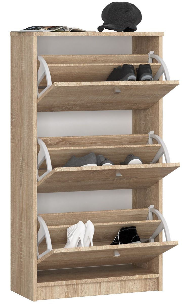 Schuhschrank mit 3 Klapptüren in Eiche Sonoma, Platz für 18 Paar Schuhe. .. mehr