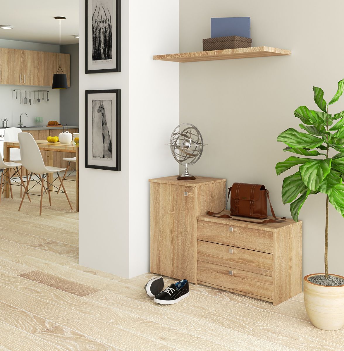 MÖBELSET FÜR DEN FLUR Der Schuhschrank, kombiniert mit einer Kommode, sorgt für Funktionalität und Platzersparnis.- Schuhschrank aus abriebfester laminierter Platte