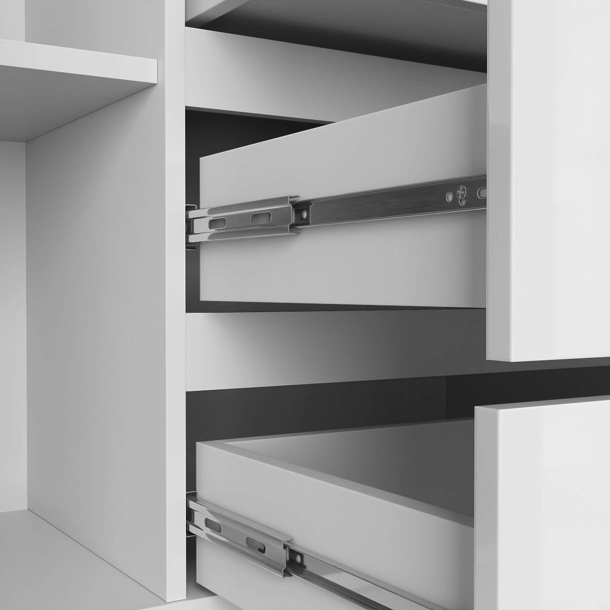 - Die Schubladen bewegen sich auf Metallkugelführungen- Die Kanten sind mit einer ABS-Kante versehen, die einen hohen Schutz gegen Beschädigungen bietet