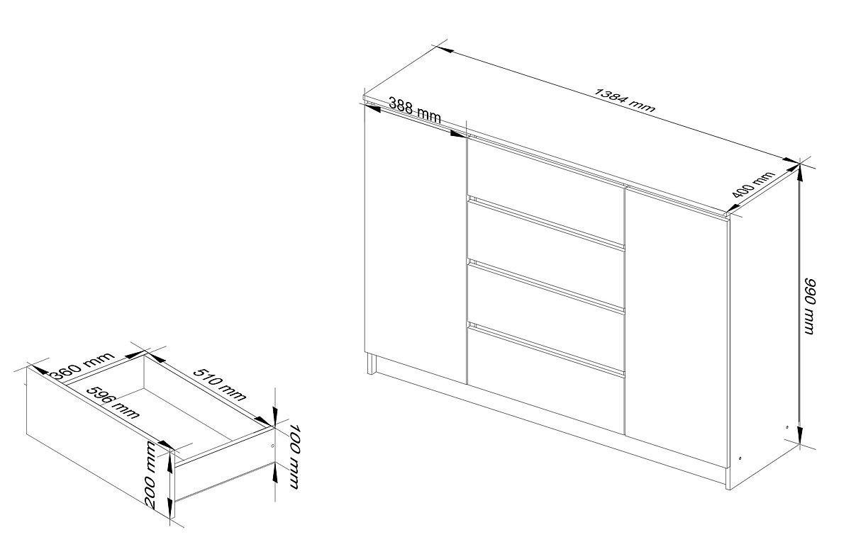 KOMMODE K140 2 TÜREN 4 SCHUBLADEN