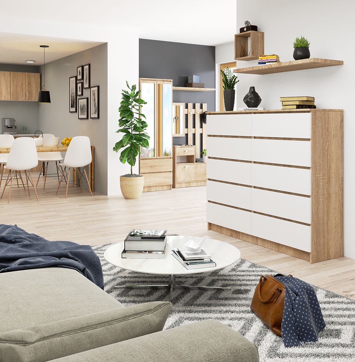 Kombination aus Sonoma-Eiche und Weiß mit 10 Schubladen. .. mehr
