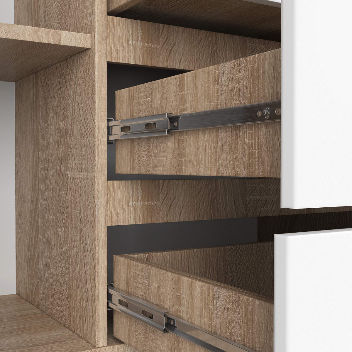 - Schubladen bewegen sich auf Metallkugellaufschienen - Kanten mit ABS-Kante beklebt, die hohen Schutz gegen Beschädigung bietet
