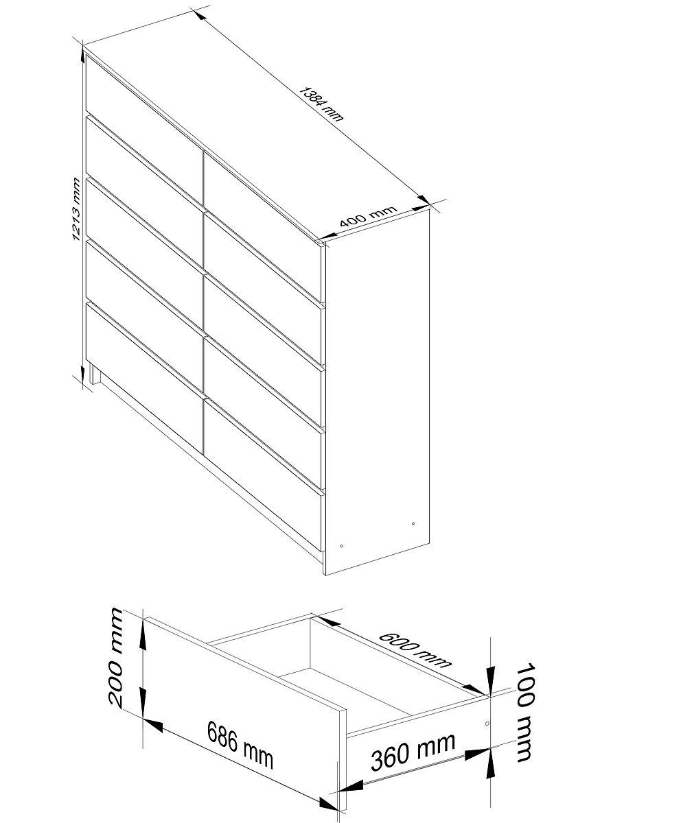 Solide Möbel aus unserem Angebot sind beliebt bei Kunden, die klassischen Minimalismus bevorzugen. Die vorgestellte Kommode K140 besticht durch ihre einfache Form, universelle Farbgebung (Eiche Sonoma) und praktische Lösungen. Wir legen besonderen Wert auf Qualität und bieten Möbel aus strapazierfähigen und hochwertigen Materialien an. Unser empfohlenes Modell mit zehn Schubladen eignet sich hervorragend für das Wohnzimmer, Schlafzimmer oder Büro, aber auch für viele andere Räume, die Sie modisch und funktional einrichten möchten. Gute Qualität zu einem niedrigen Preis wird sicherlich Anhänger moderner Lösungen erfreuen. Wir empfehlen auch, sich mit weiteren Möbelstücken aus dieser Kollektion vertraut zu machen - alle Kommoden zeichnen sich durch solide Verarbeitung und strapazierfähige Materialien aus, aus denen sie gefertigt sind.