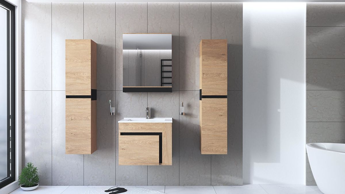 Der Unterschrank für Waschbecken DUESA ist die ideale Wahl für jedes moderne Badezimmer, in dem Wert auf Funktionalität, Ordnung und natürliches Design gelegt wird. Dank seiner kompakten Abmessungen passt er perfekt unter die meisten Waschbecken mit einer Breite von 60 cm und bietet praktischen Stauraum für den täglichen Bedarf. Die innere Anordnung kombiniert eine Schublade und offene Regale, die eine übersichtliche Aufbewahrung von Kosmetika, Handtüchern oder Reinigungsmitteln ermöglichen. Der Schrank ist aus hochwertigem Holz im Dekor Eiche Gold gefertigt, das dem Badezimmer ein angenehmes, natürliches Aussehen verleiht und gleichzeitig eine lange Lebensdauer auch bei täglichem Gebrauch gewährleistet.
