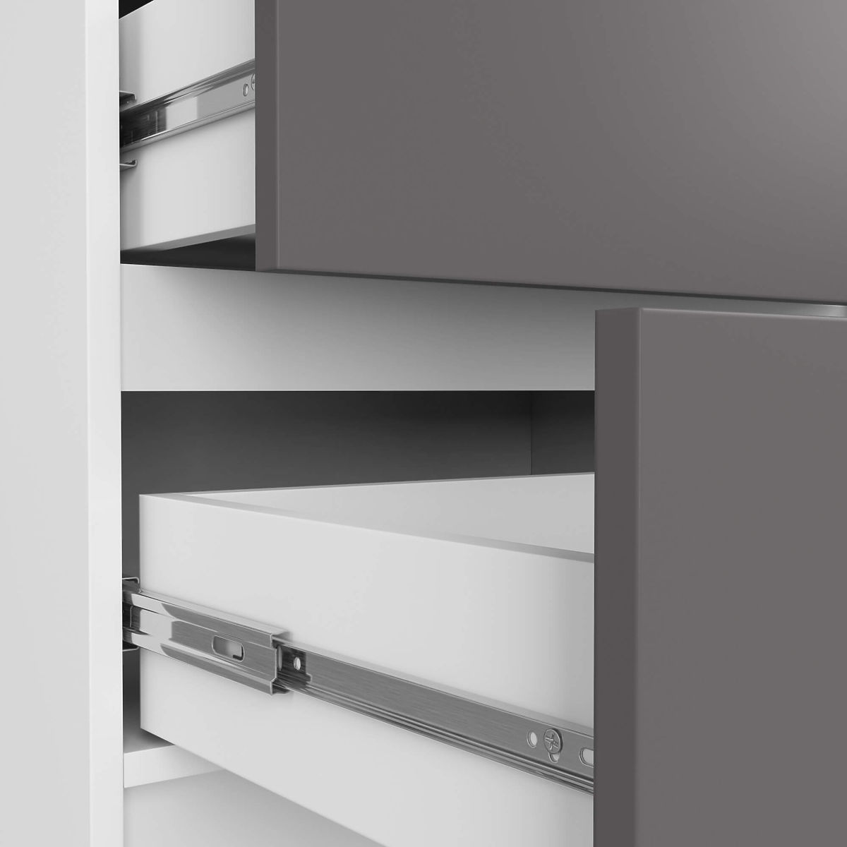 - Schubladen laufen auf Metallkugelführungen- Kanten mit ABS-Kante beklebt für hohen Schutz gegen Beschädigung