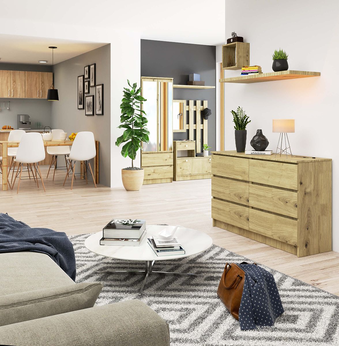 Kommode mit 6 Schubladen aus Eiche Artisan. .. mehr
