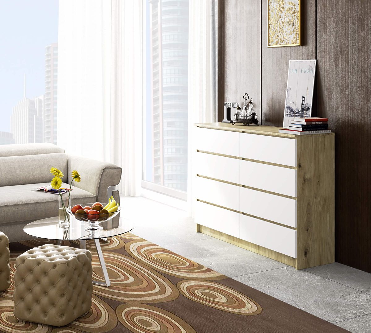 Kommode mit 8 Schubladen, Eiche Artisan und Weiß, zur Selbstmontage. .. mehr