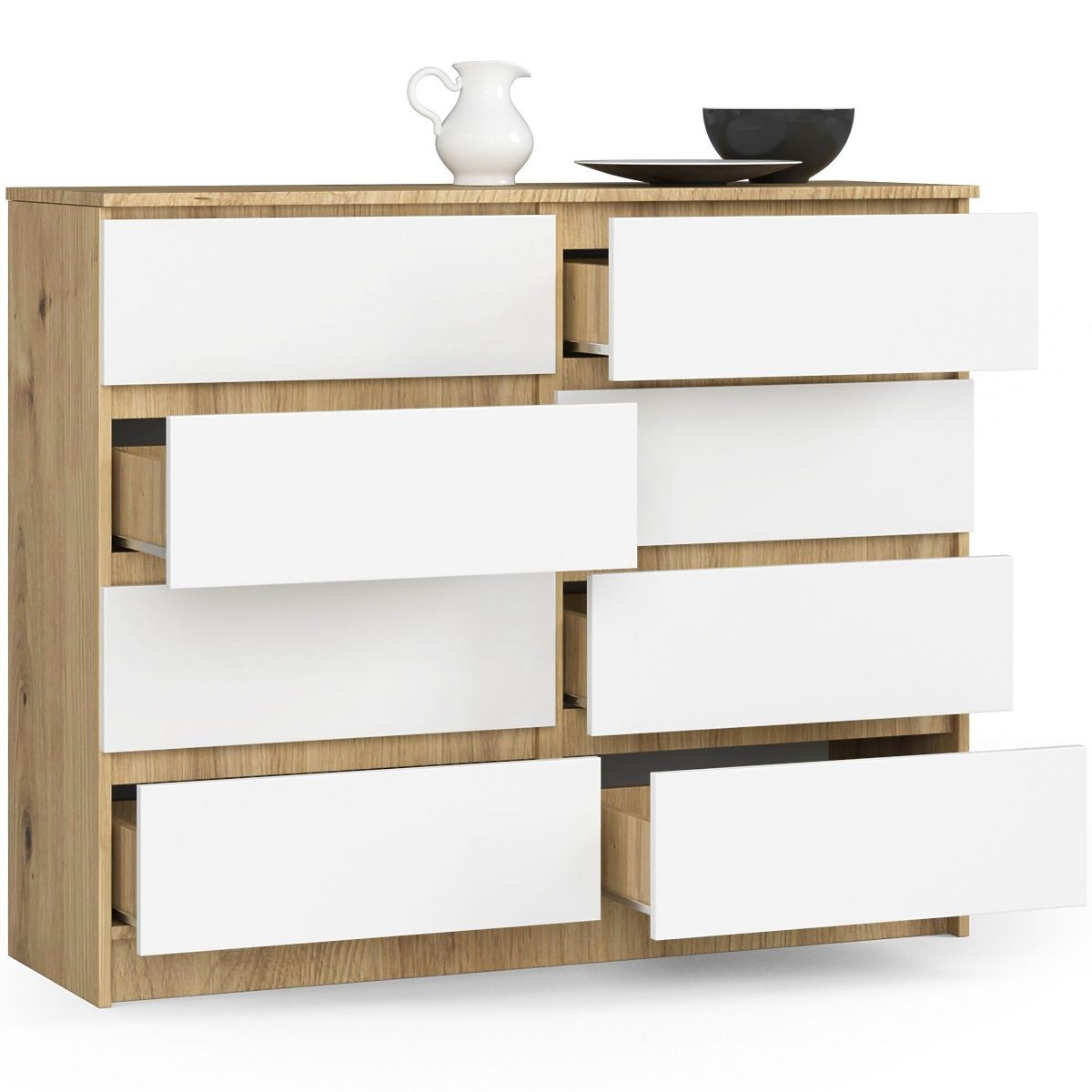 Kommode mit 8 Schubladen aus Eiche Artisan und Weiß. .. mehr