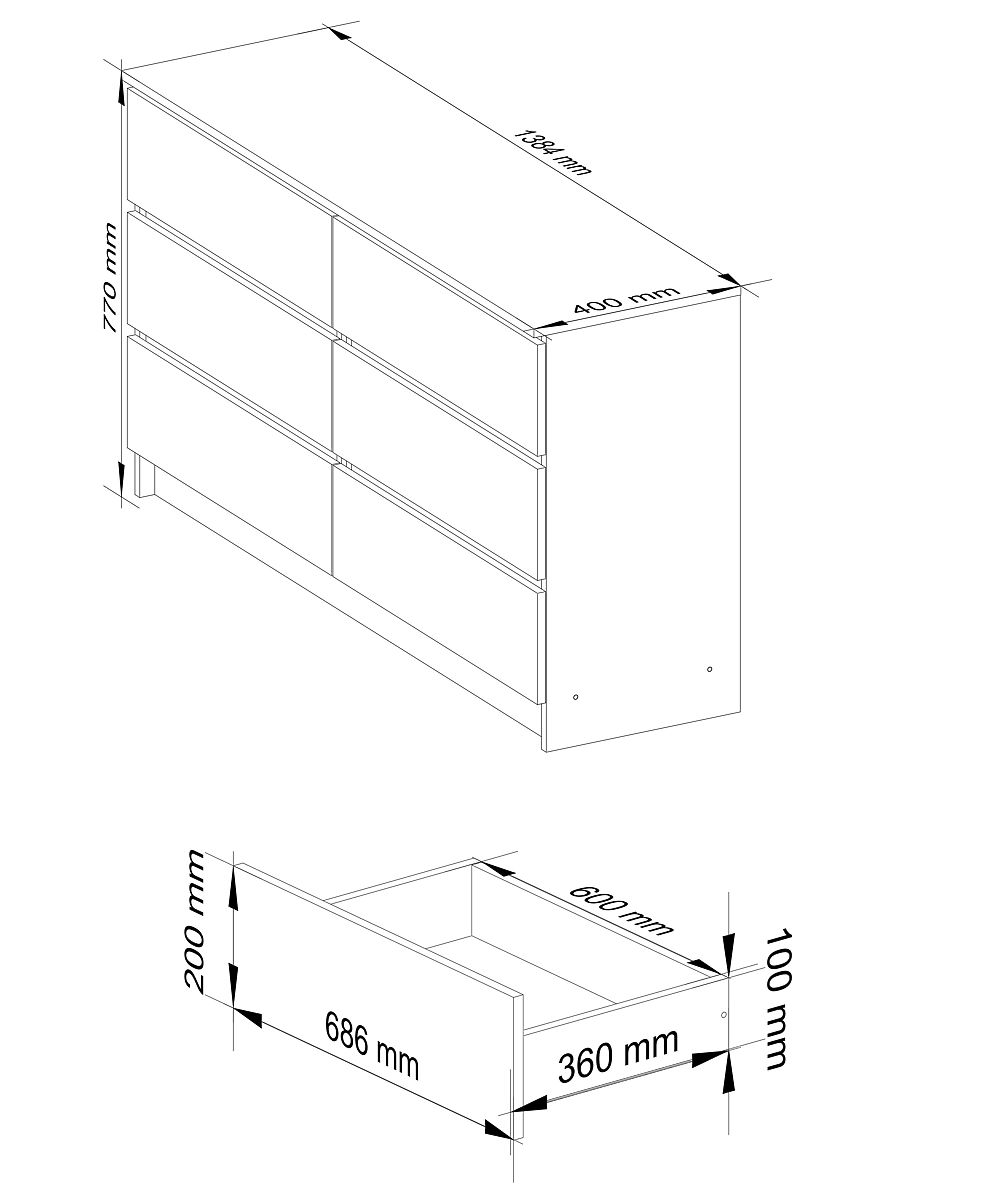 Kommode mit 6 Schubladen aus abriebfestem laminiertem Plattenmaterial. .. mehr