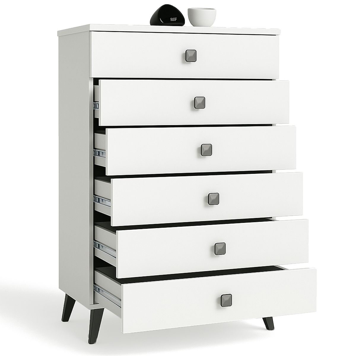 KOMMODE MOBI 6-SCHUBLADIG WEISS SCHWARZ