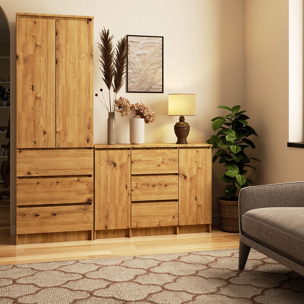 Kommode aus abriebfester laminierter Platte mit 2 Türen und 3 Schubladen. .. mehr