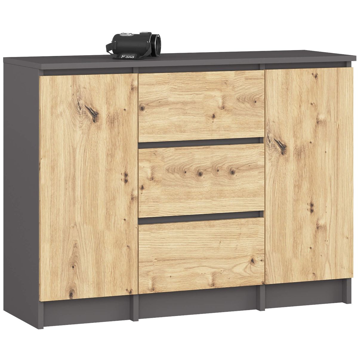 Kommode mit 3 Schubladen und 2 Türen, Graphit Grau/Eiche Artisan. .. mehr